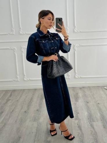 Vestito tessuto jeans, dettaglio spacco sul retro.