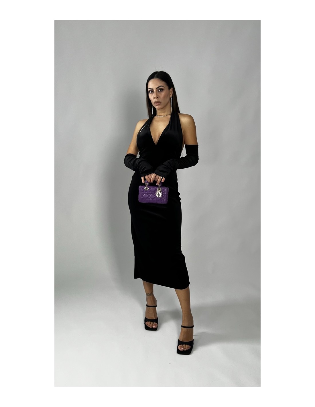 Midi dress manicotti Nero