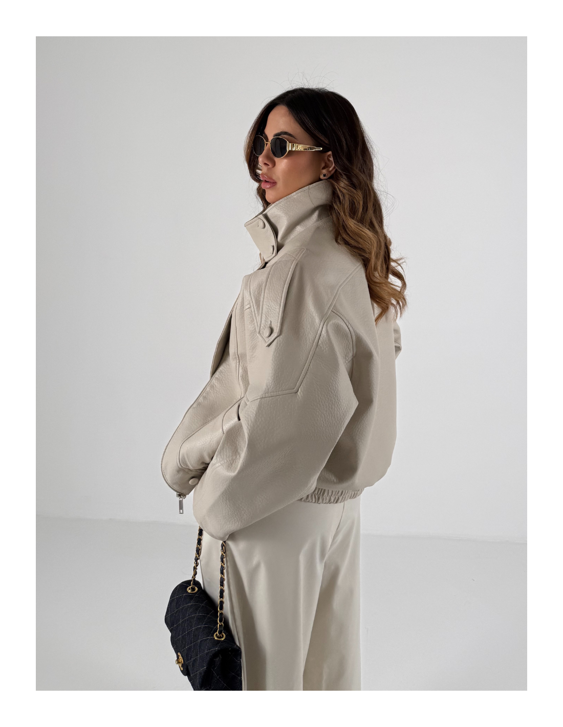 Bomber in similpelle crema , strutturato