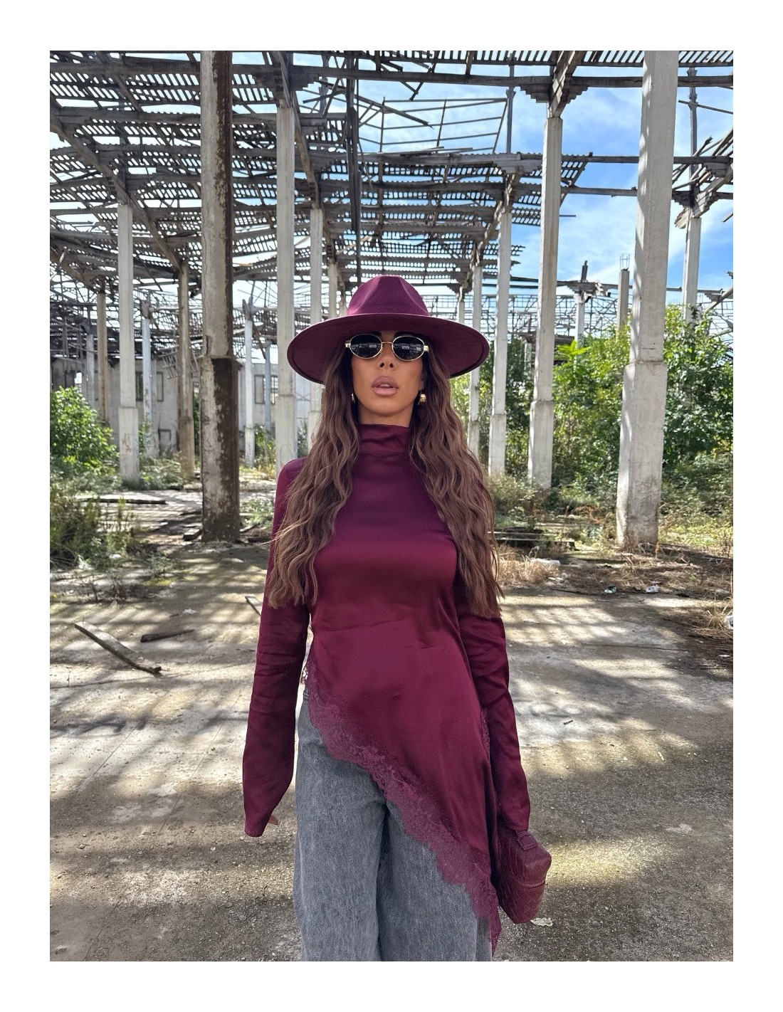 Cappello falda larga bordeaux