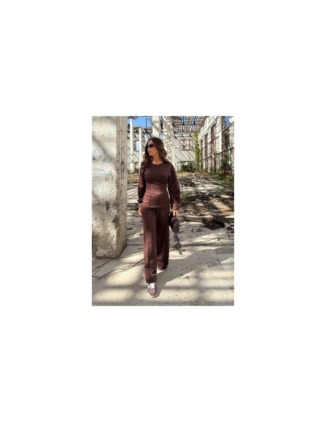 Pantalone gamba dritta con elastico in vita e spacchetti sul fondo