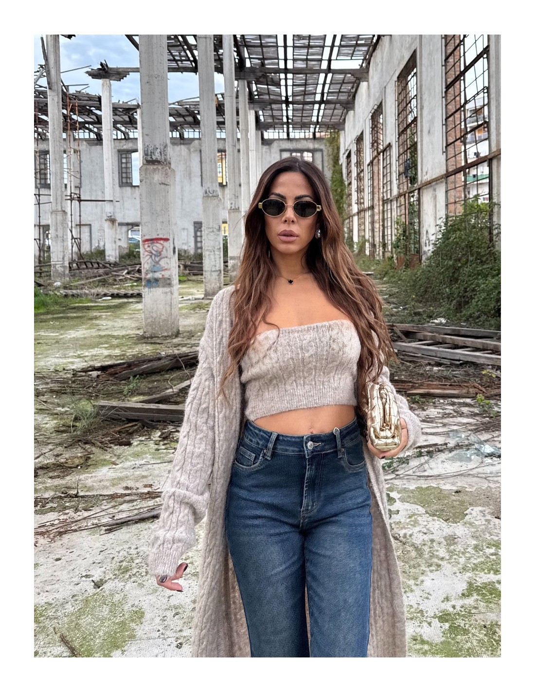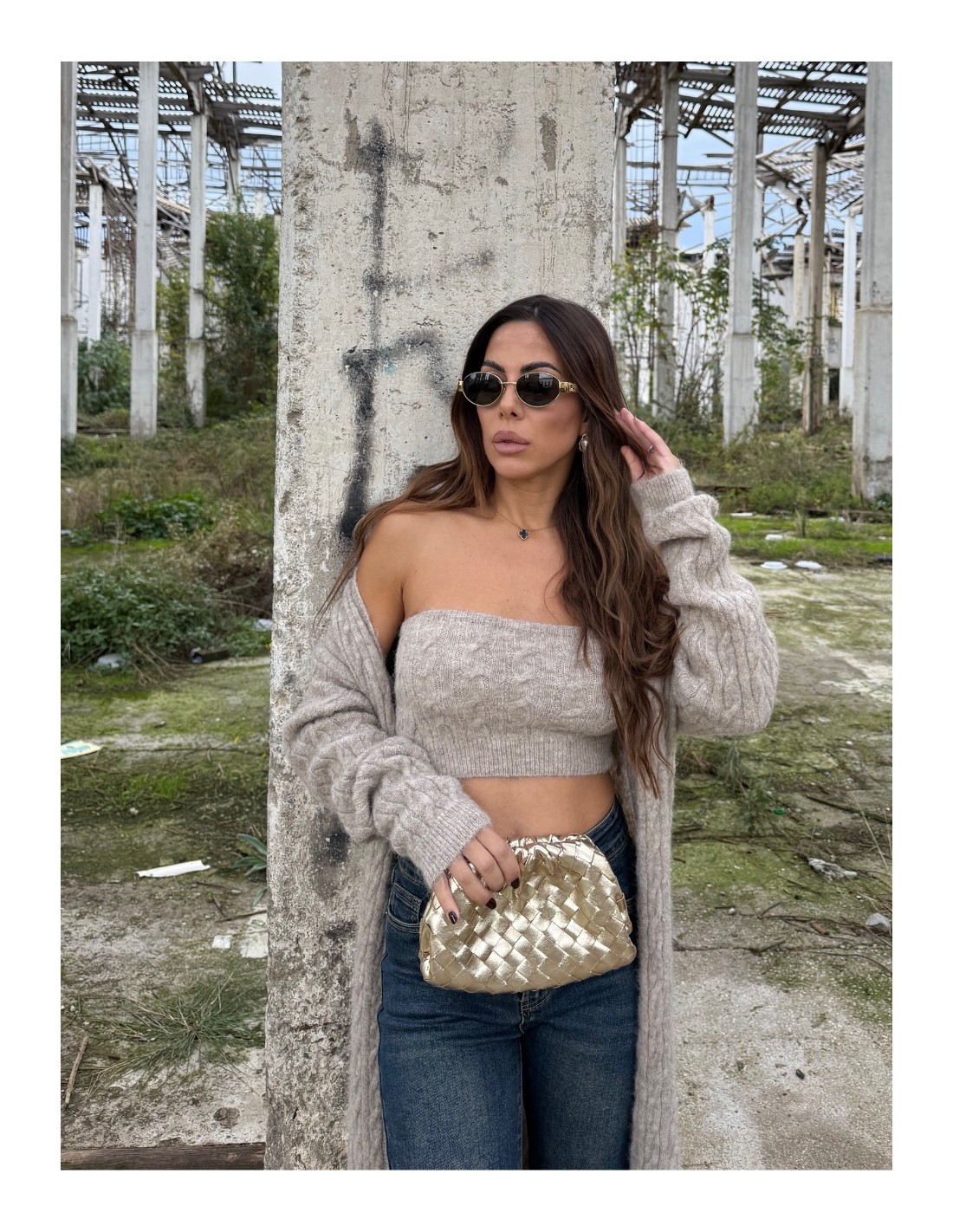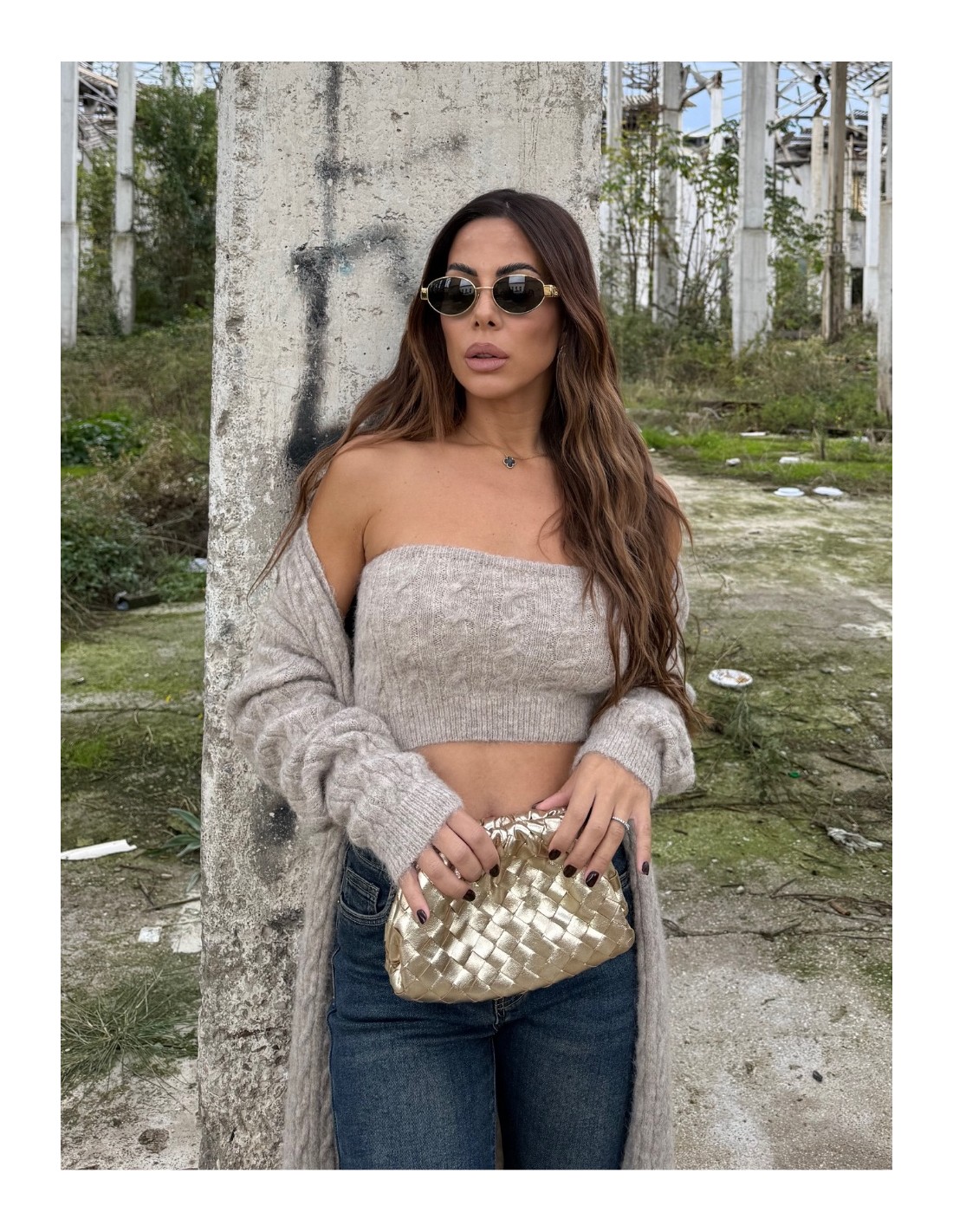 Set composto da top a fascia e cardigan lungo
