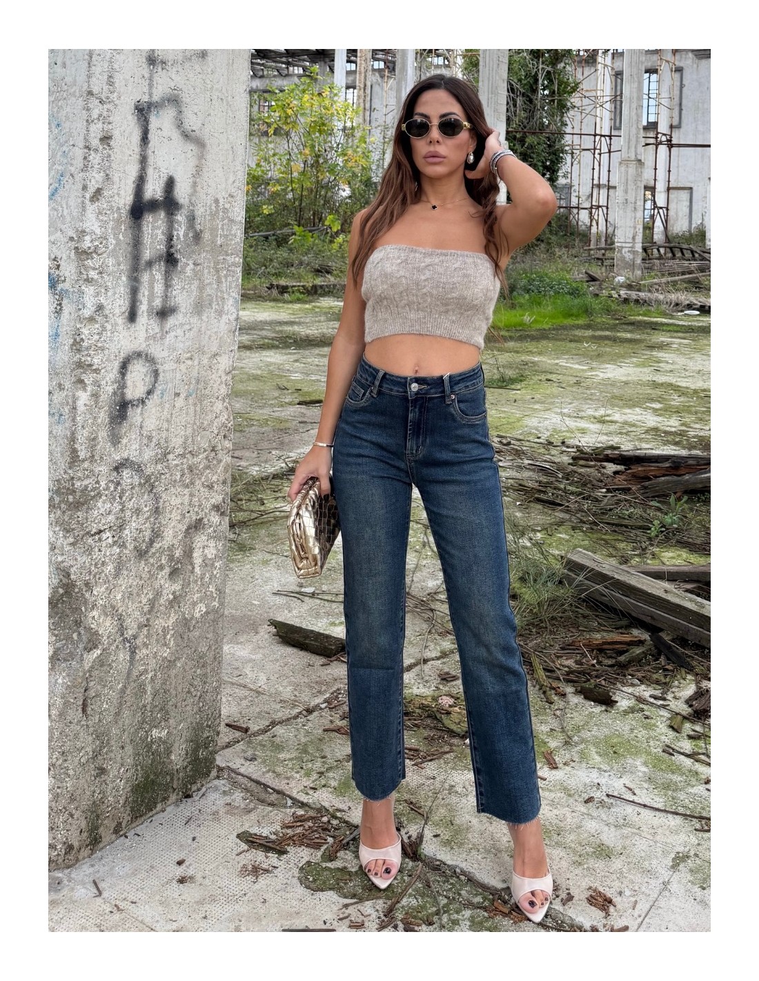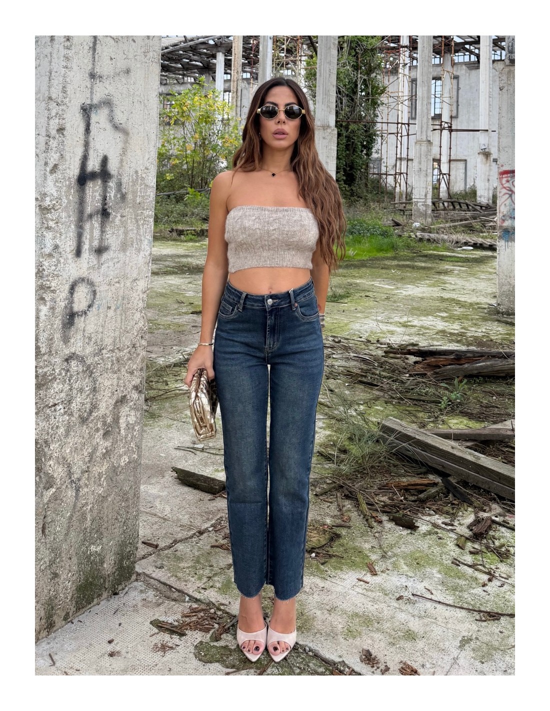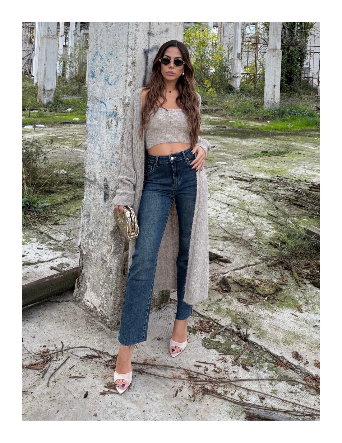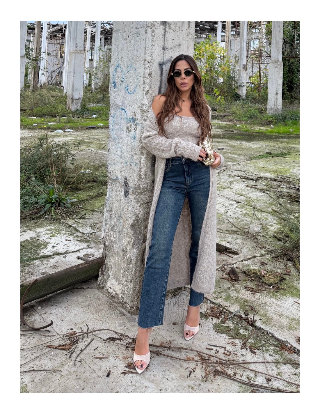 Set composto da top a fascia e cardigan lungo