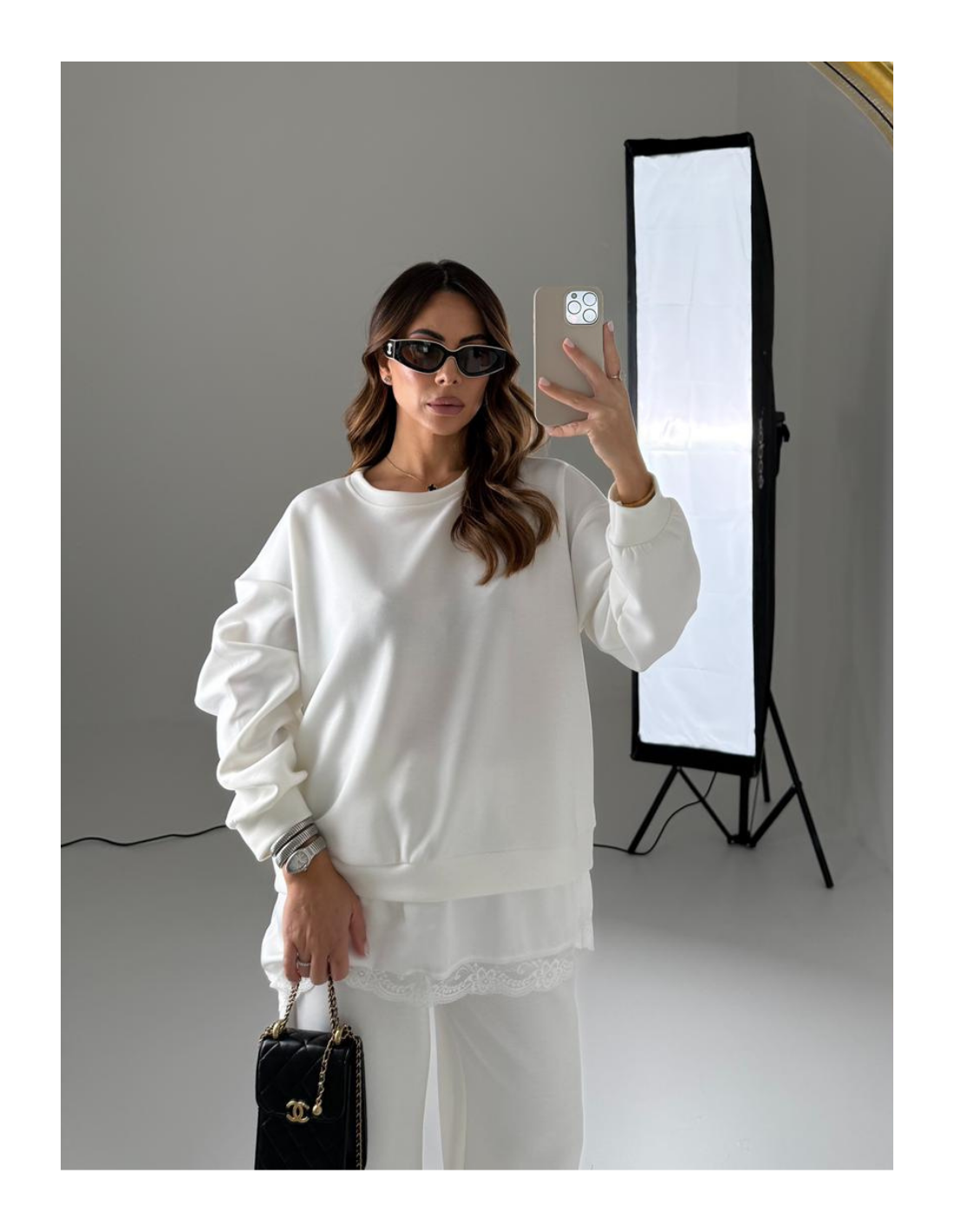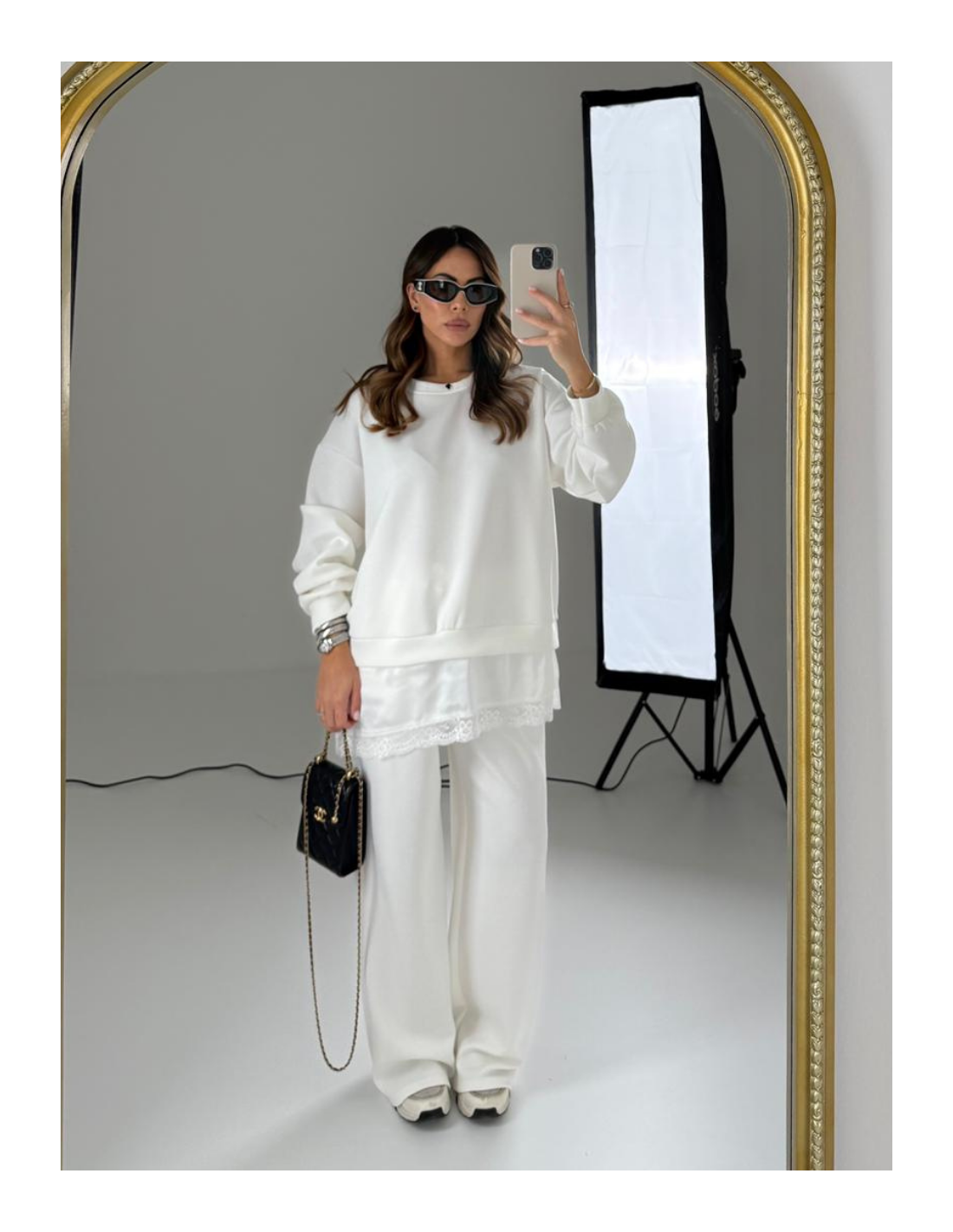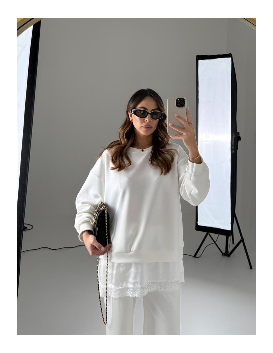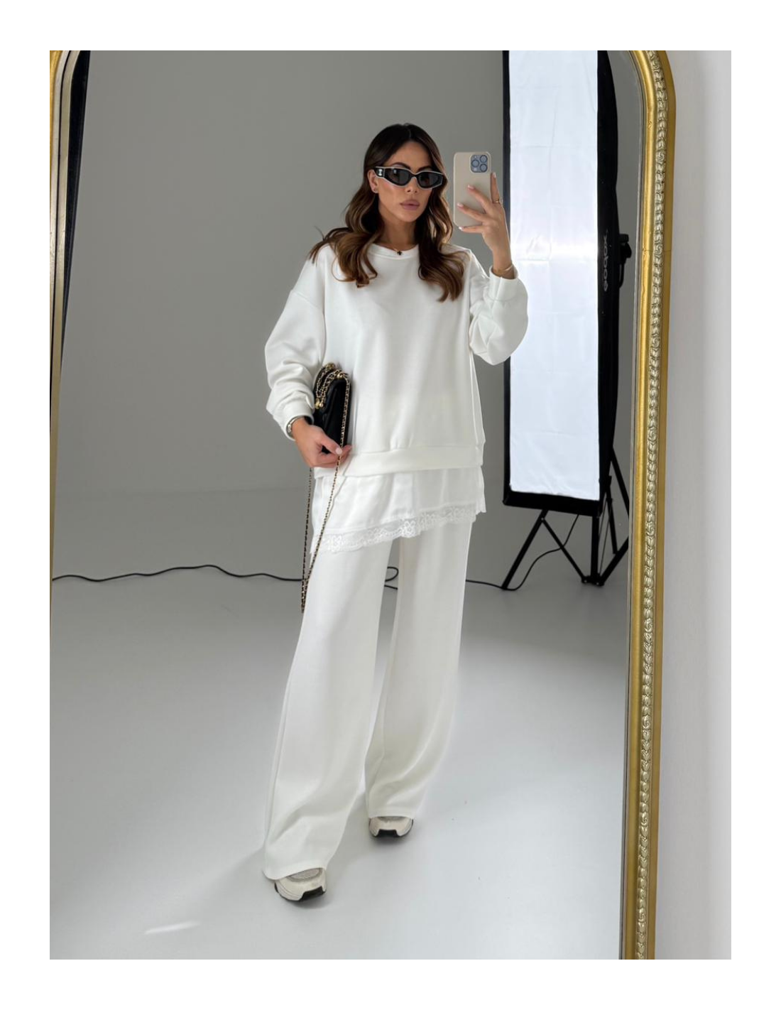 Felpa con pizzo sotto e pantalone gamba dritta con elastico