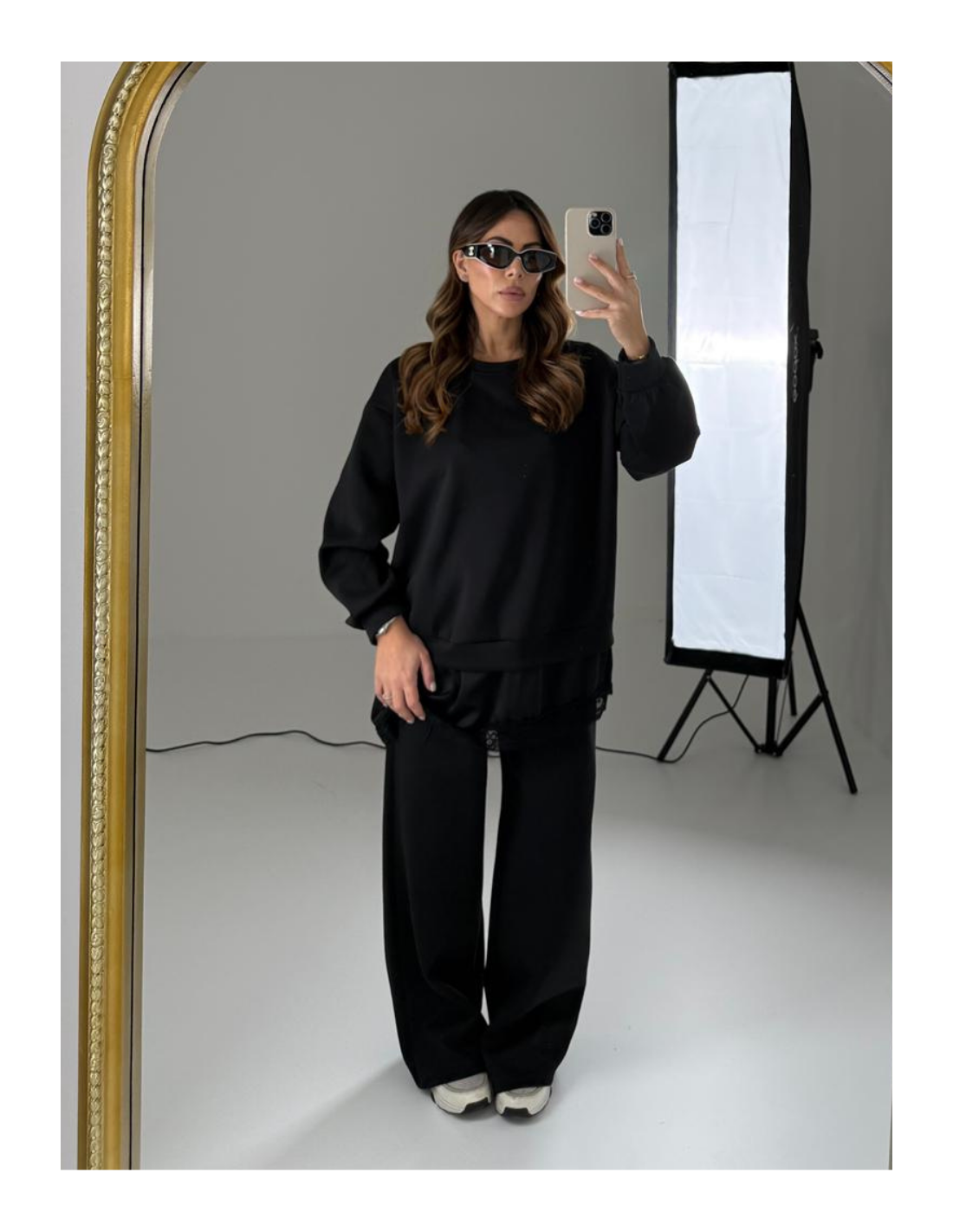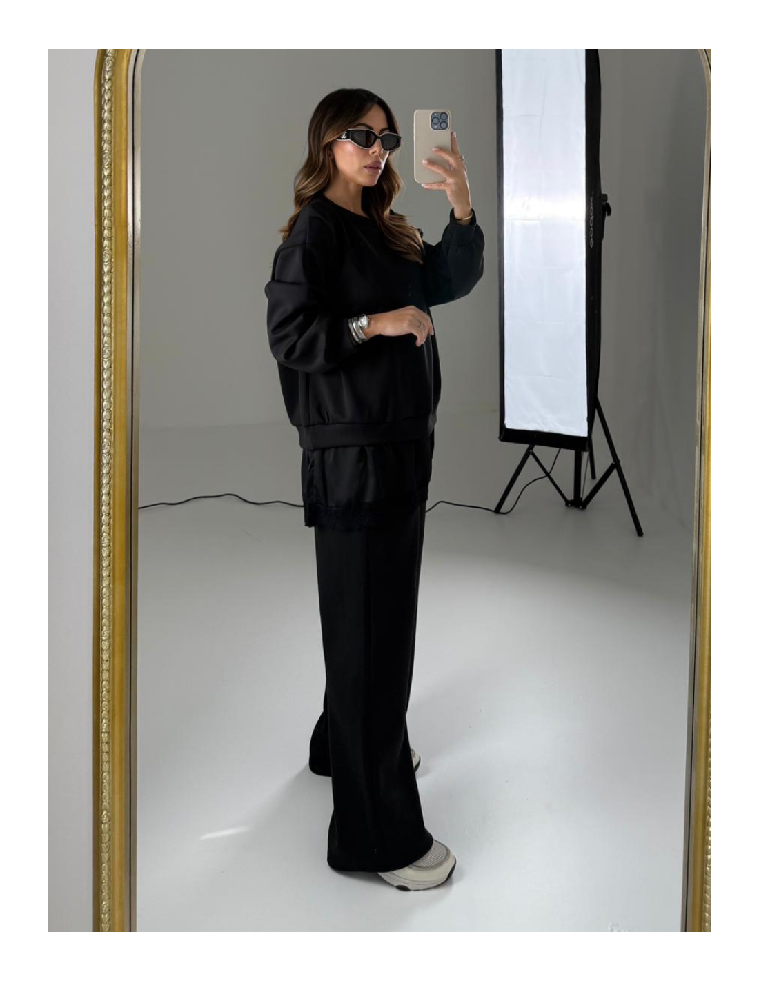 Felpa con pizzo sotto e pantalone gamba dritta con elastico