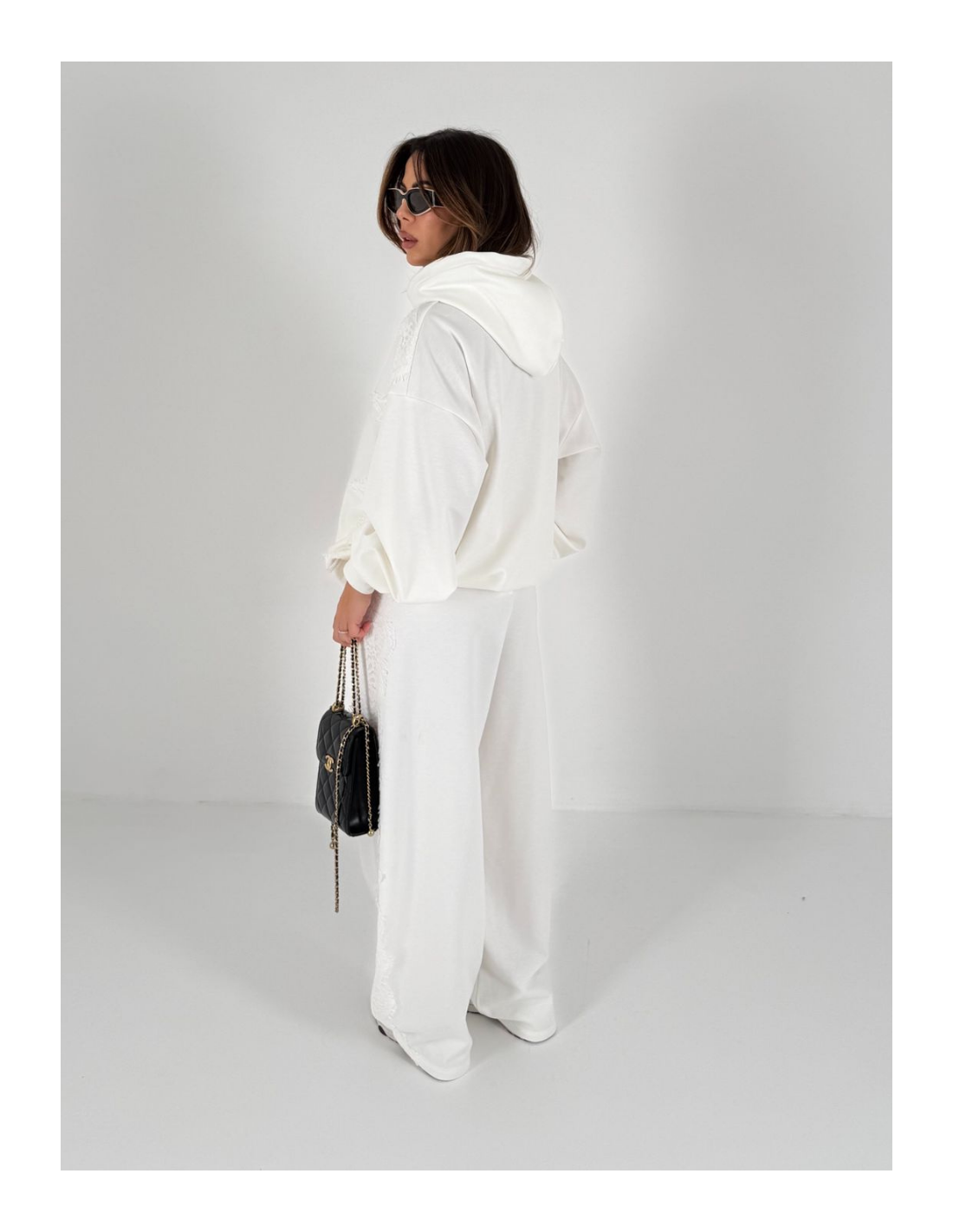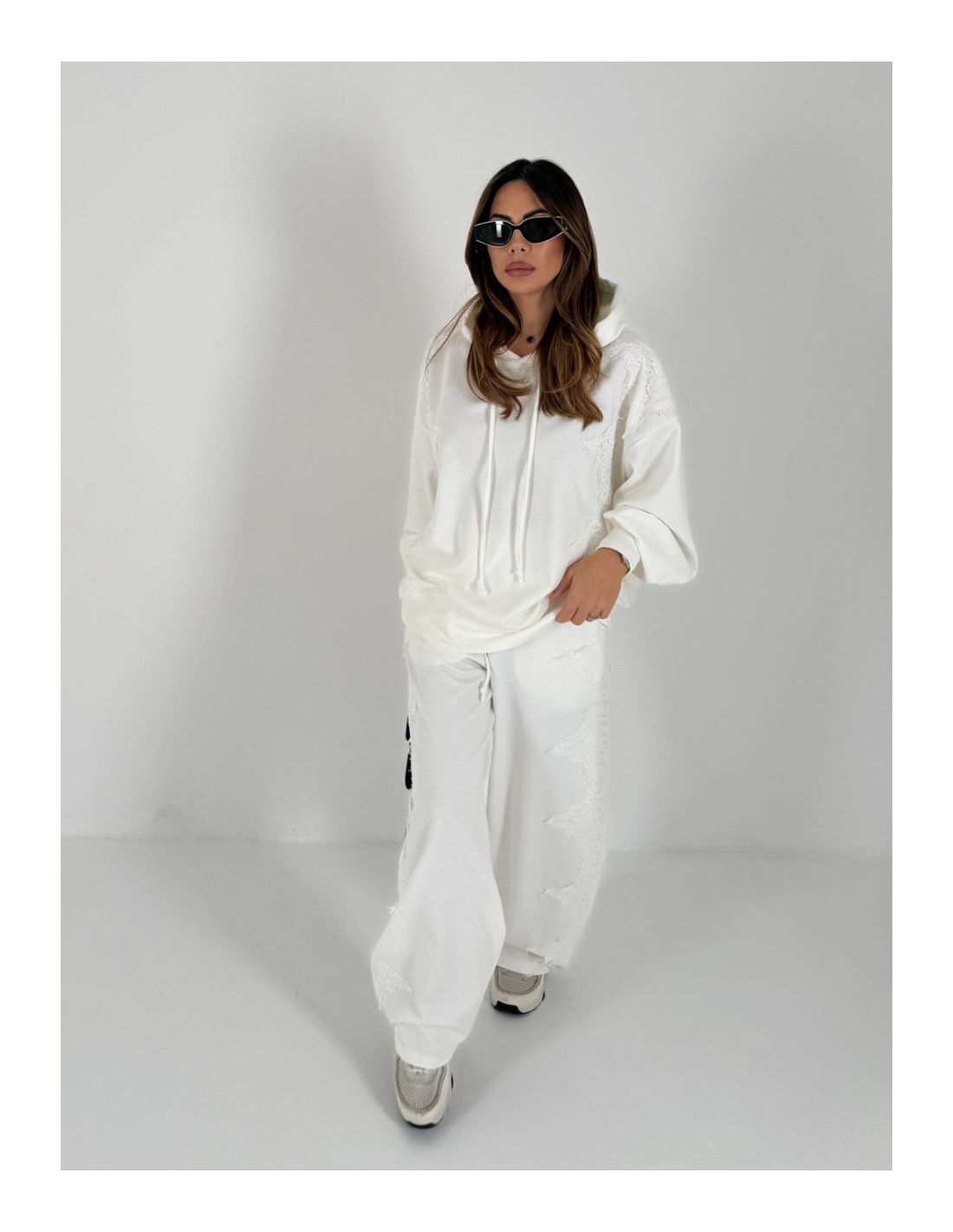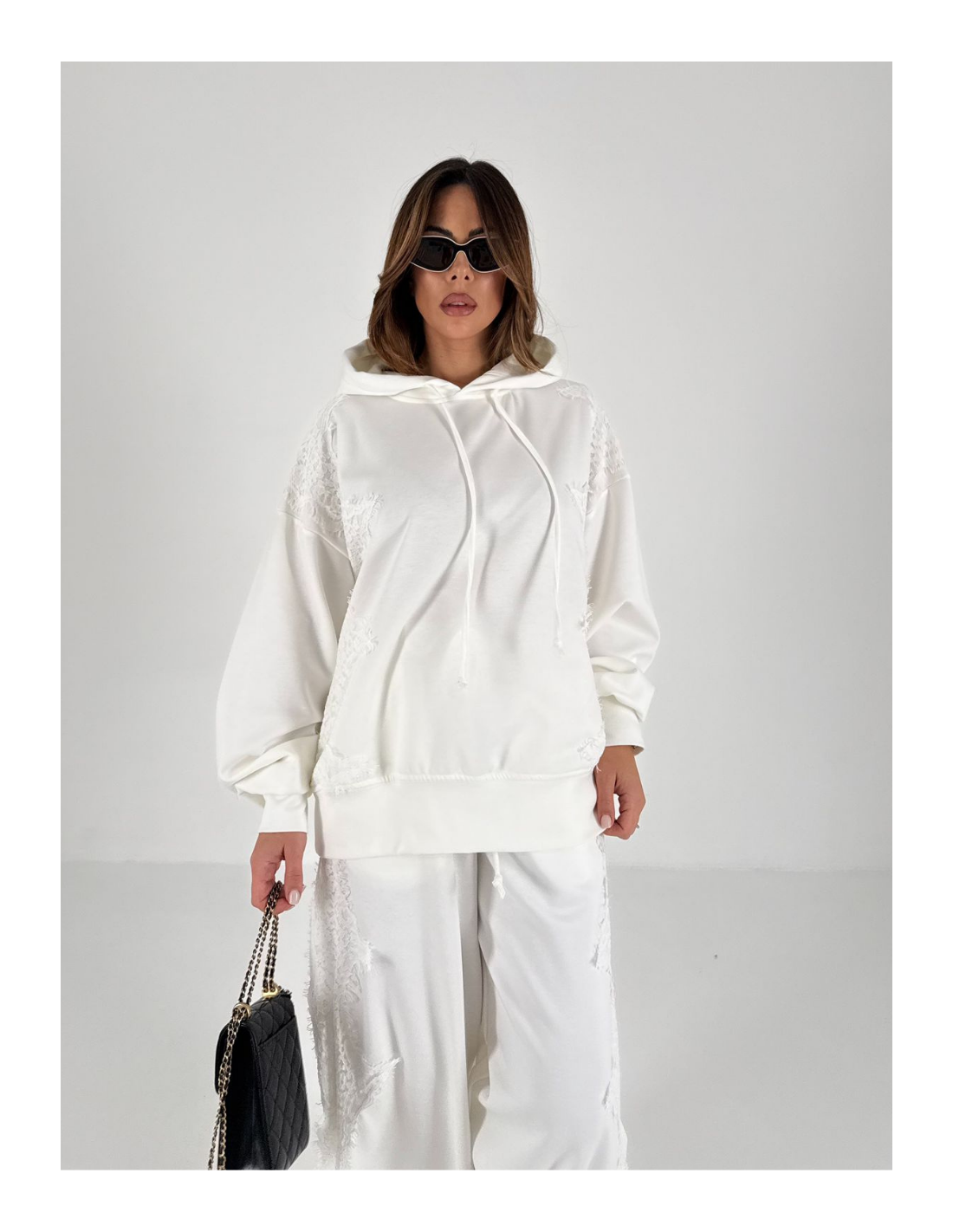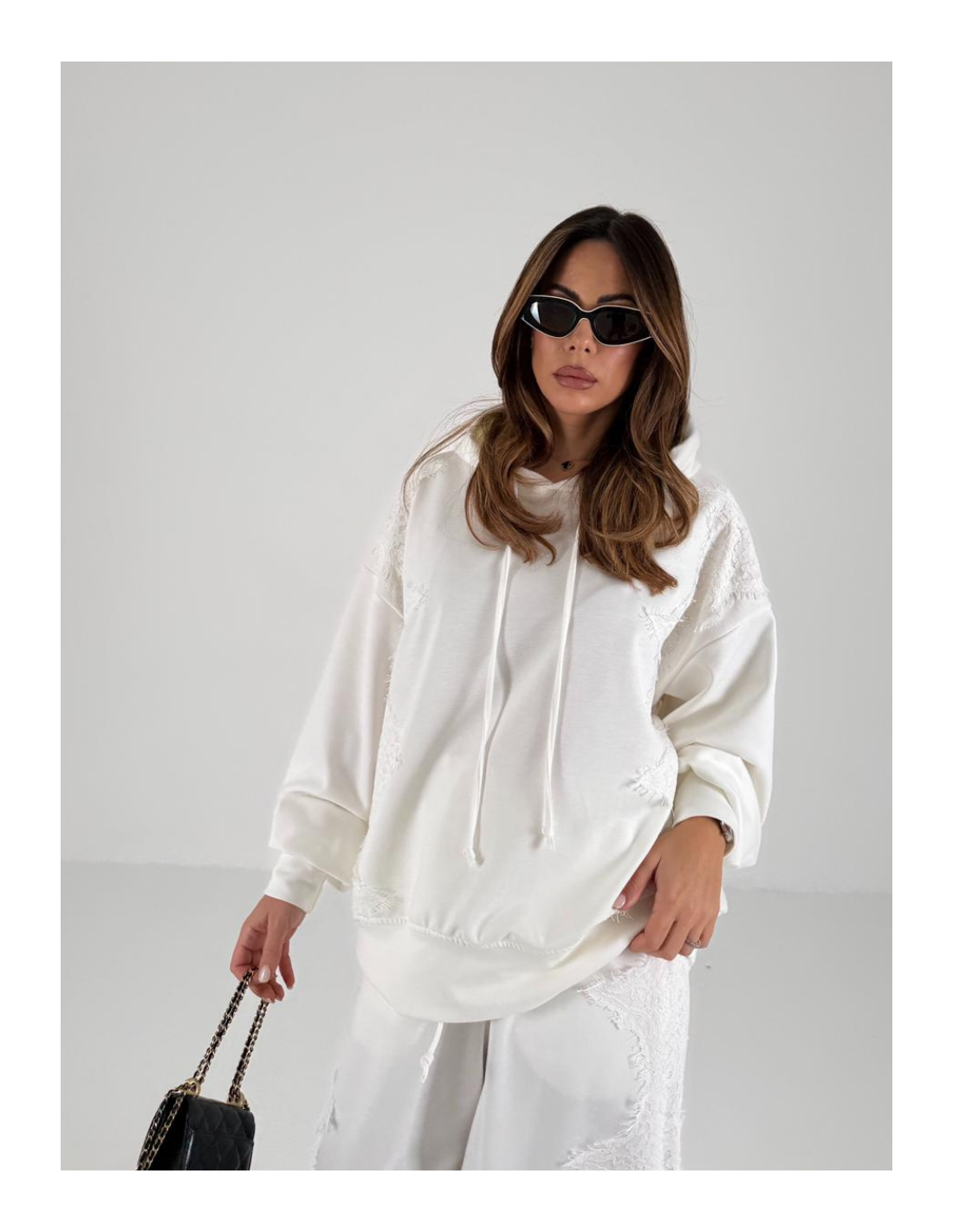 Felpa con cappuccio taglia unica , dettaglio del pizzo laterale
