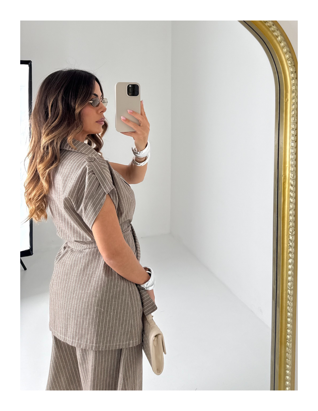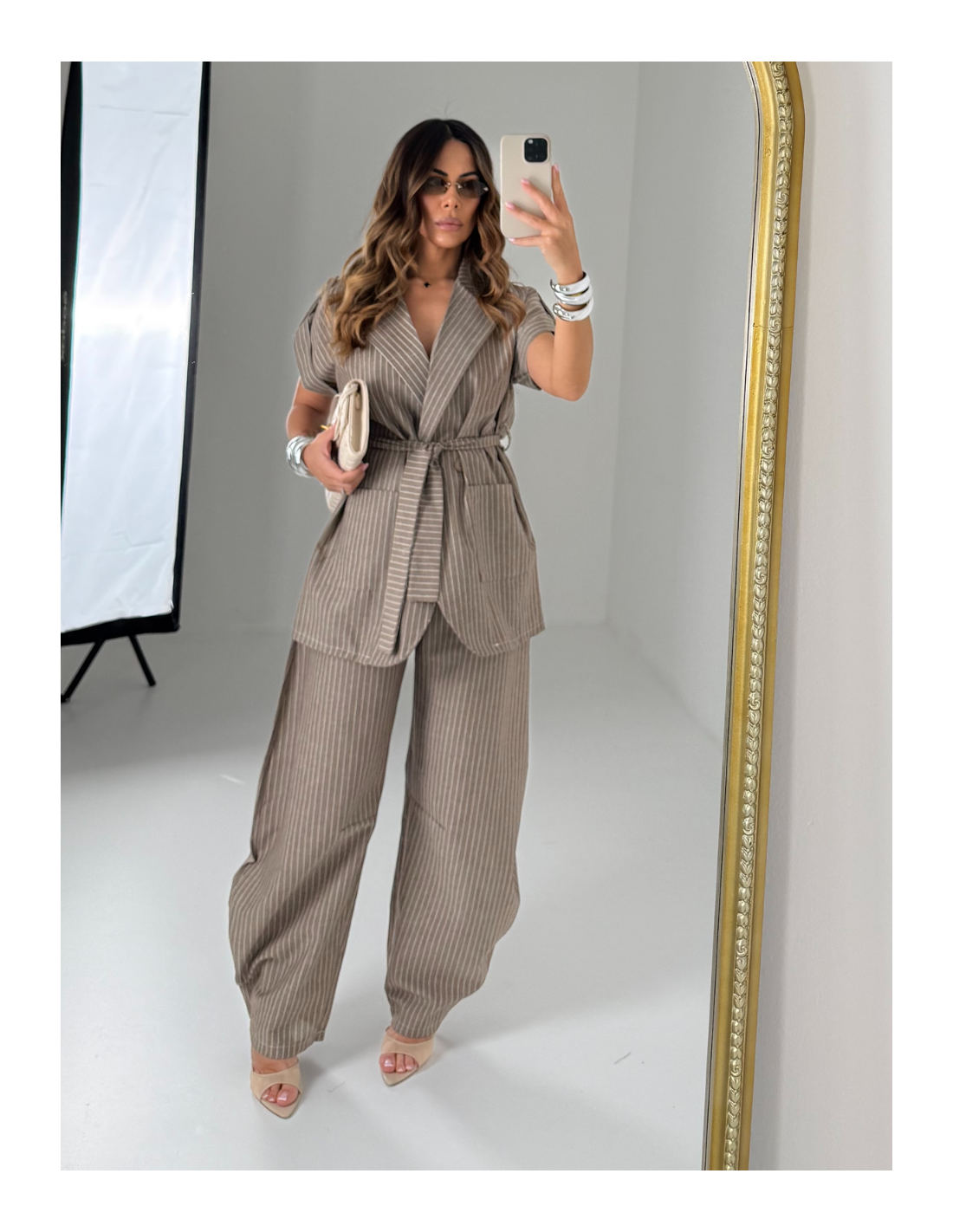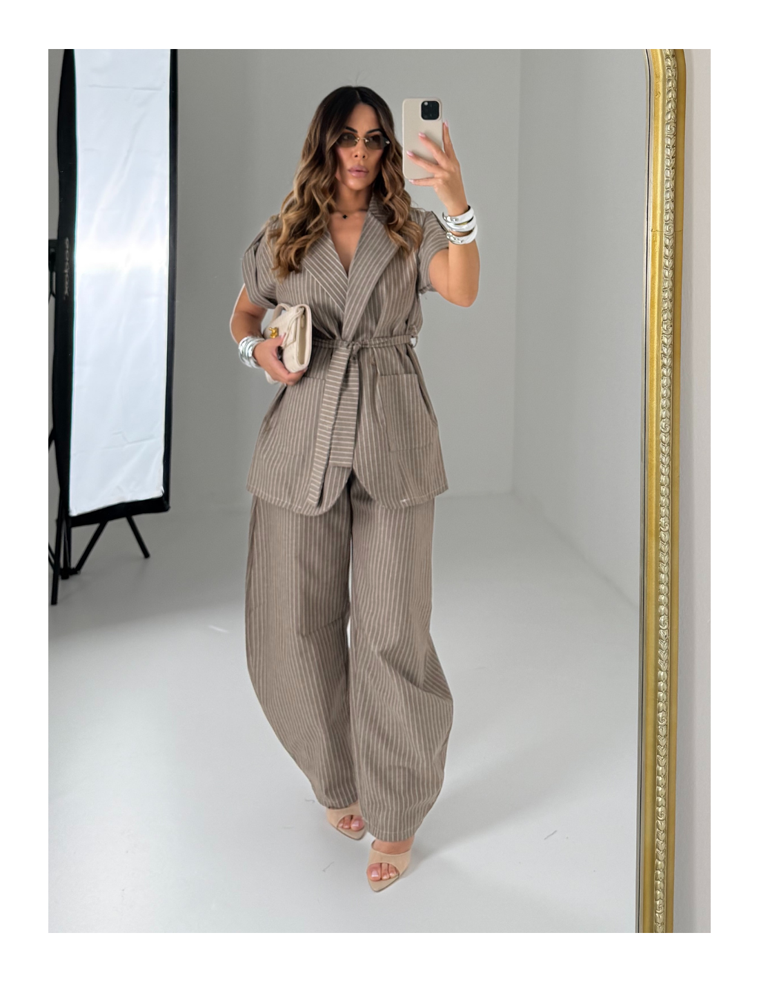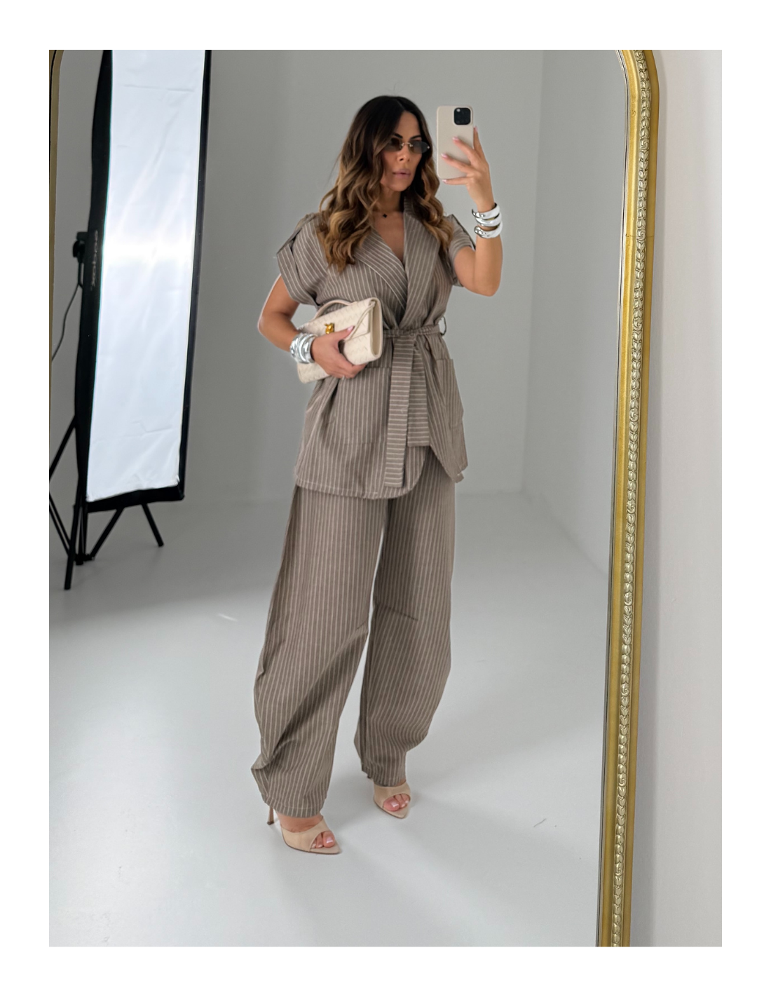 Set gessato sui toni del beige/tortora , taglia unica composto da