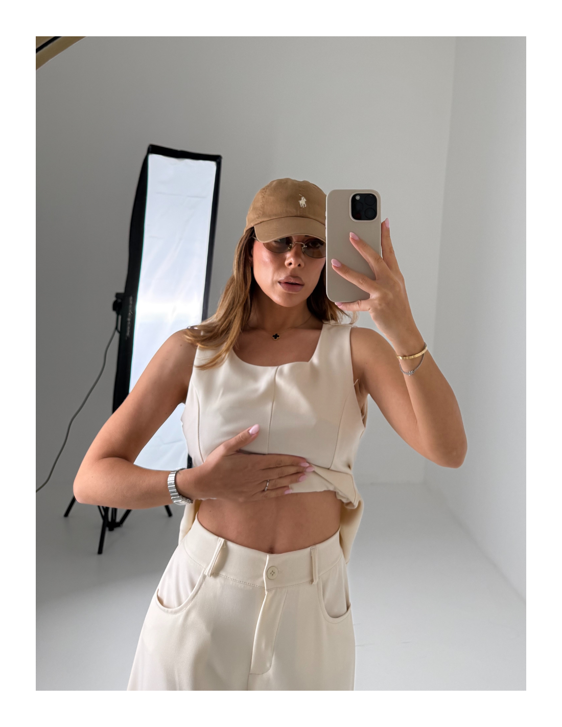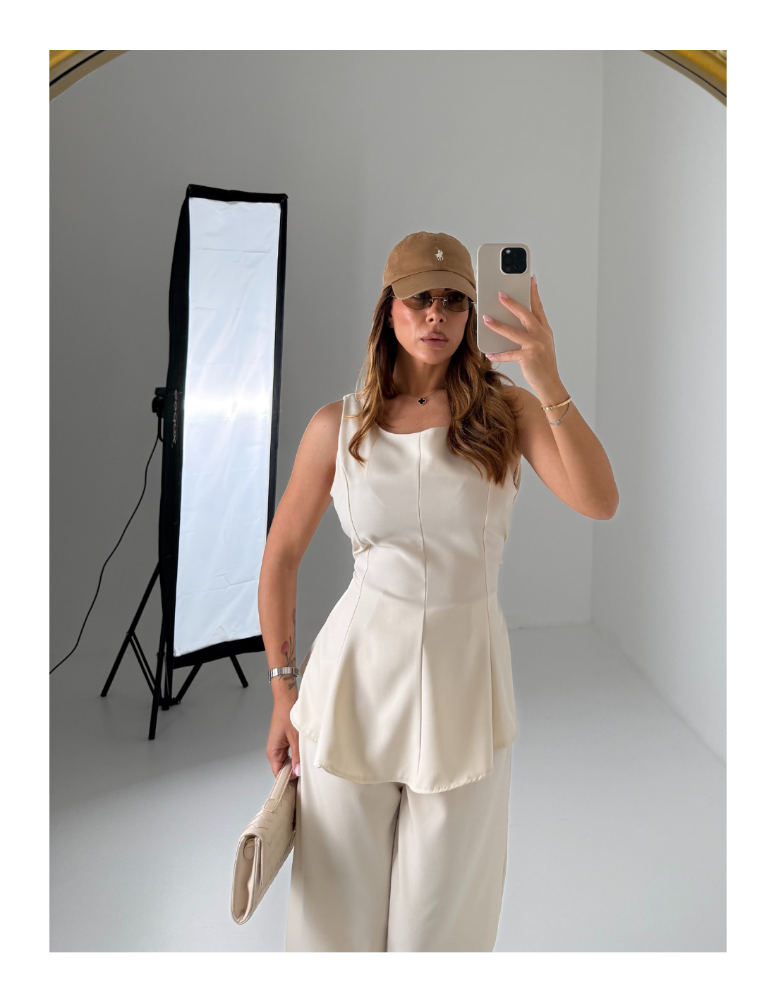 Top smanicato strutturato , con una linea aderente sul busto ,