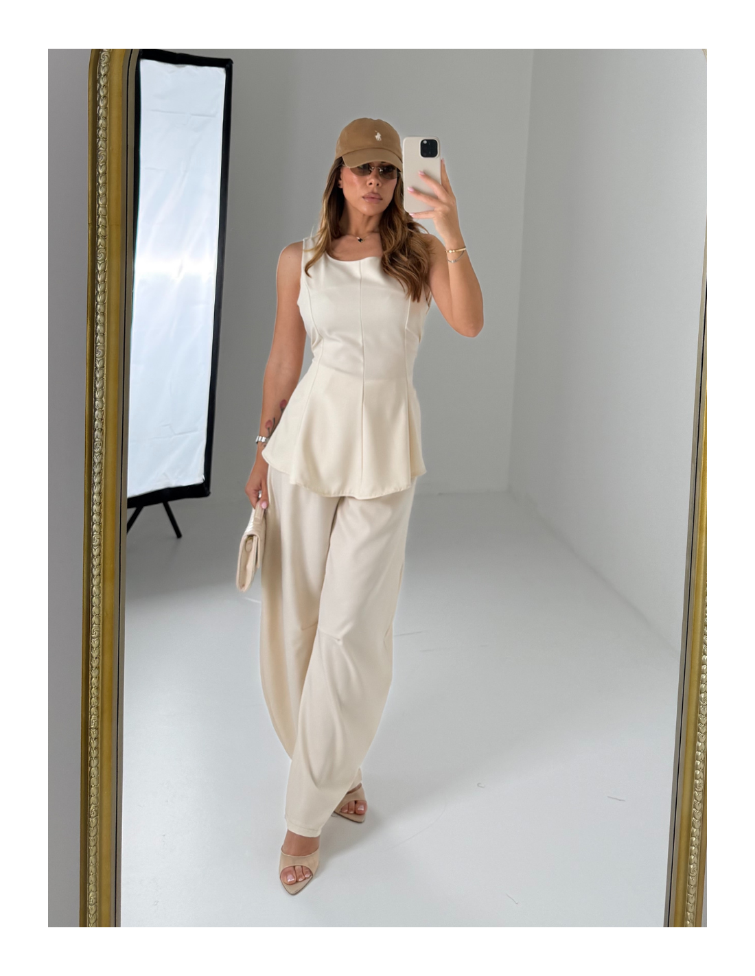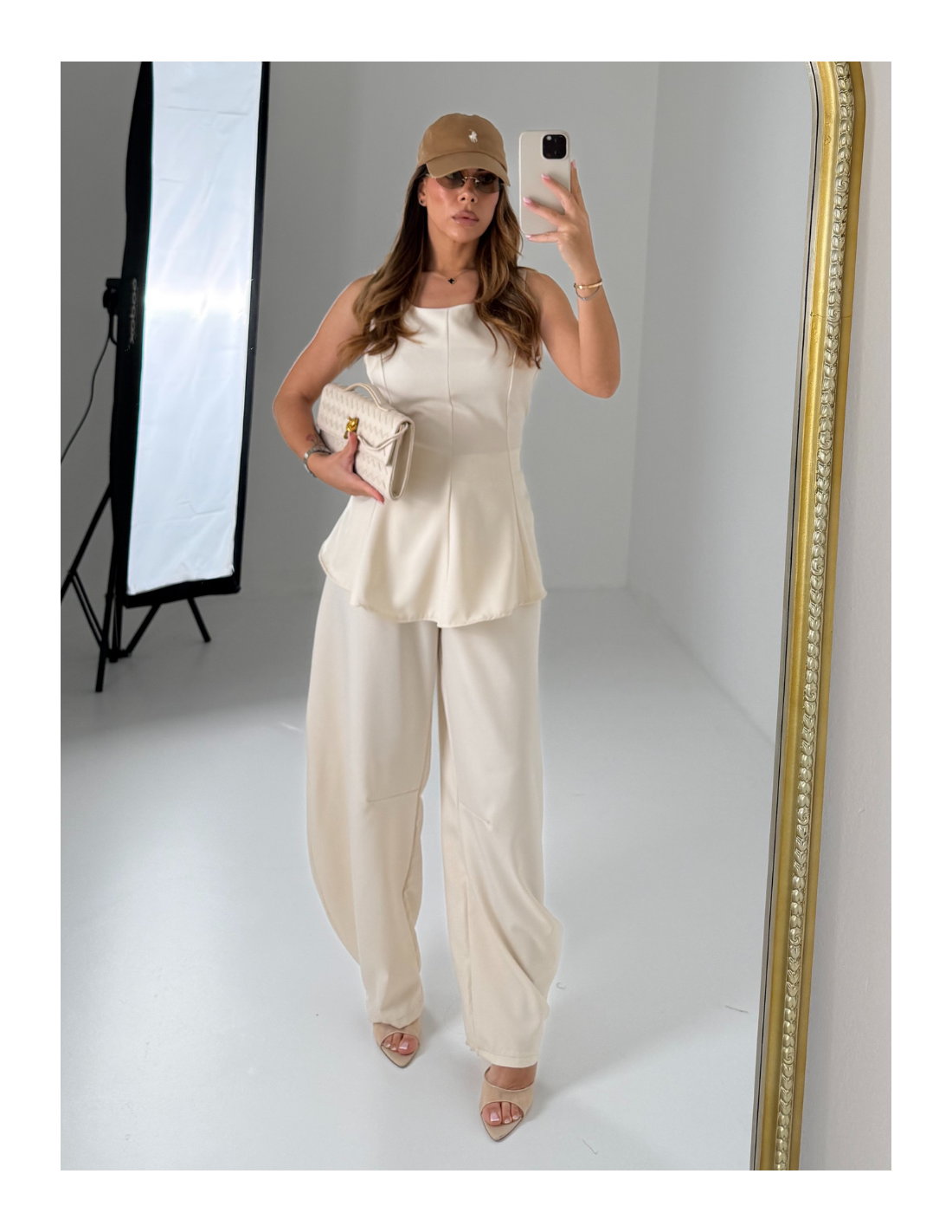 Pantaloni coordinati nello stesso tessuto e colore ,