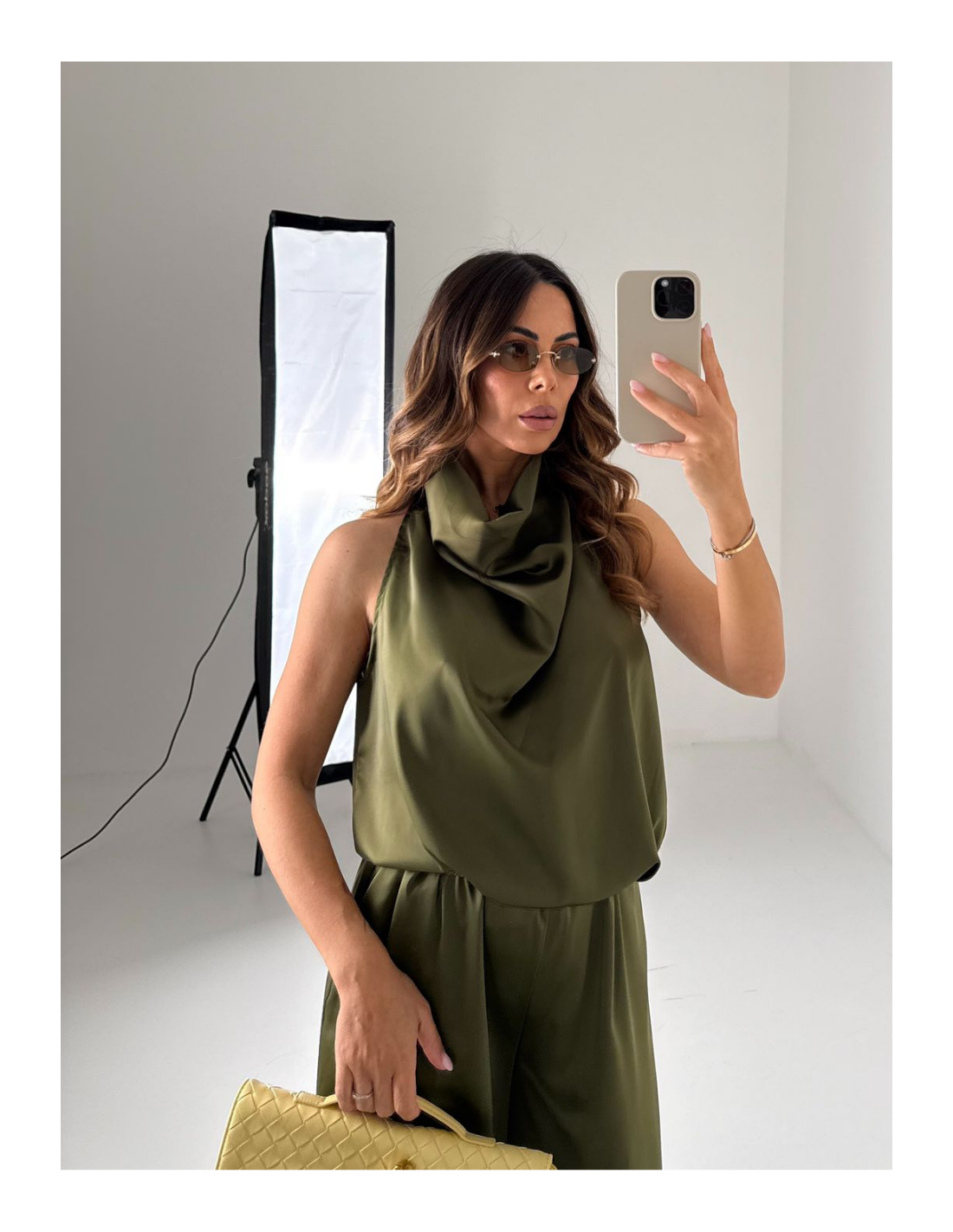 Il top é senza maniche, con una vestibilitá morbida e fluida
