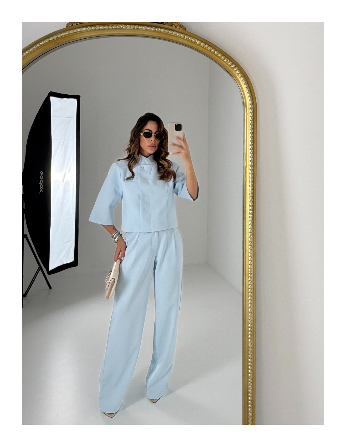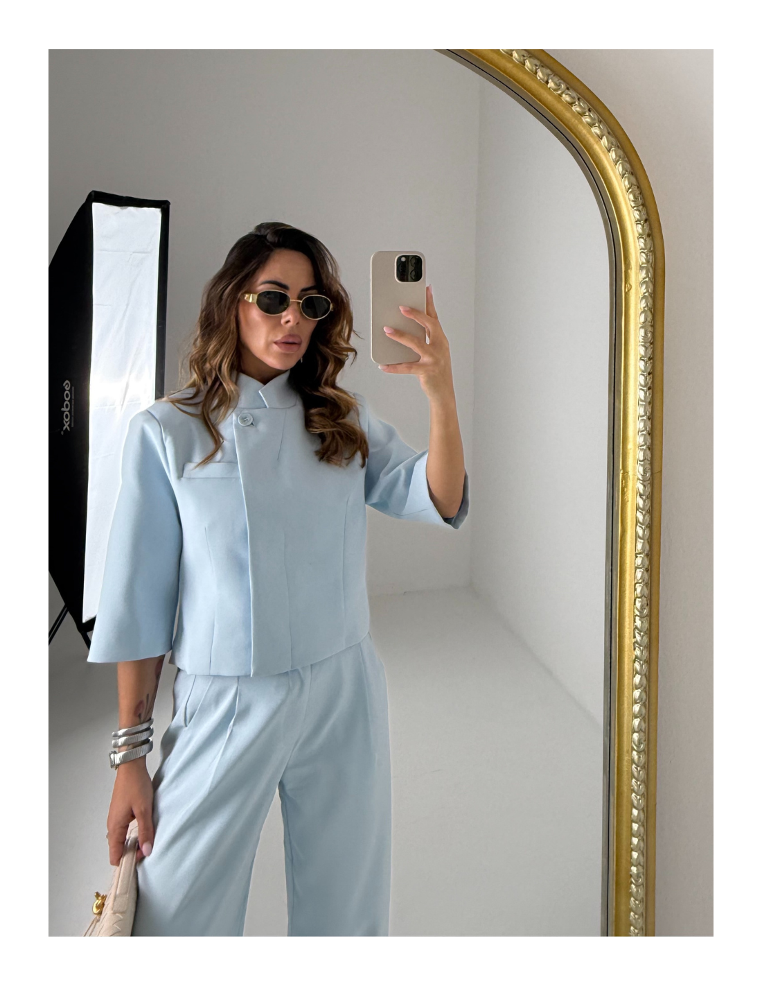 taglio pulito e strutturato , collo alto leggermente rialzato e chiusura minimal