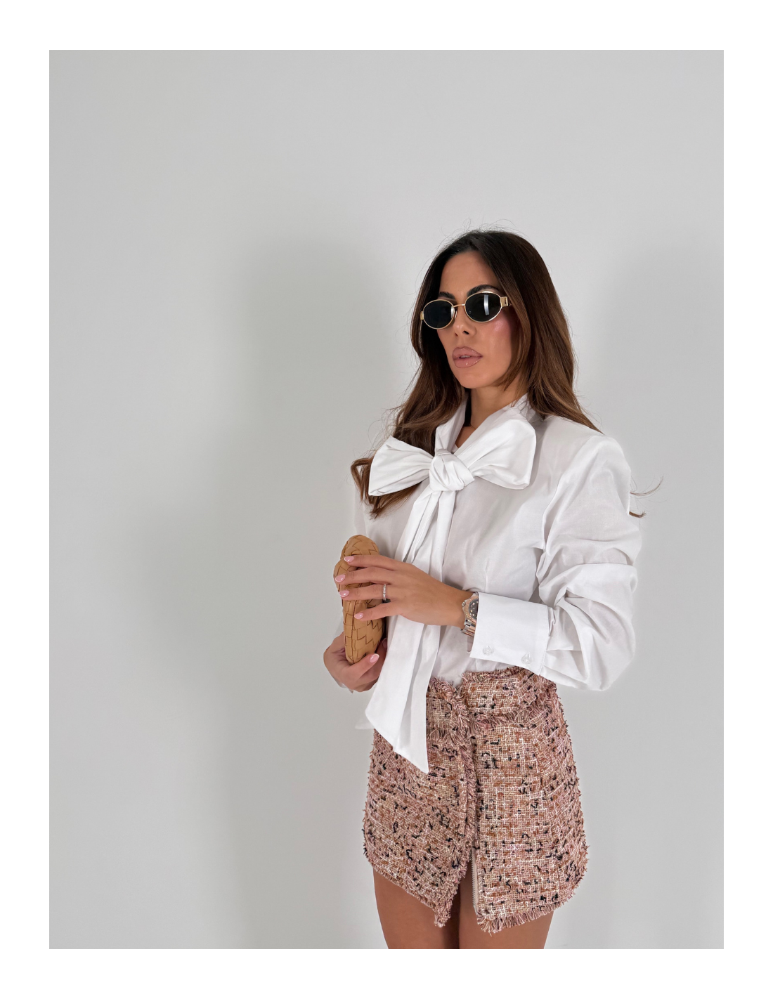 Camicia avvitata con spallina imbottita e fiocco
