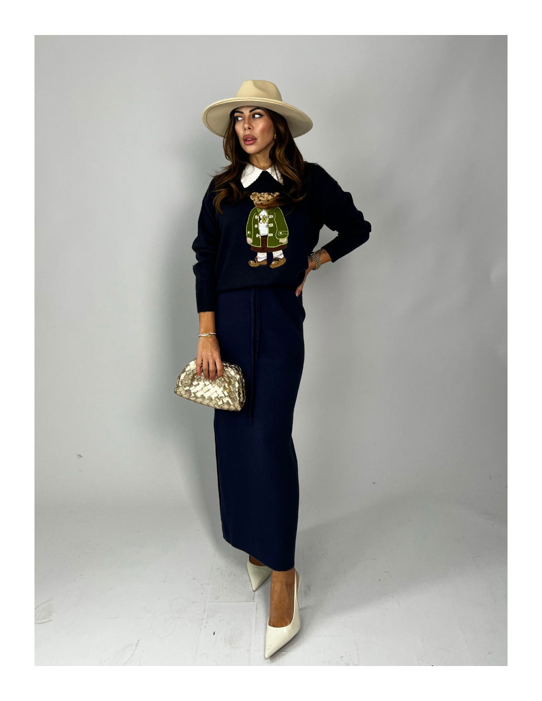 Gonna longuette in lanacon coulisse in vita e spacco laterale