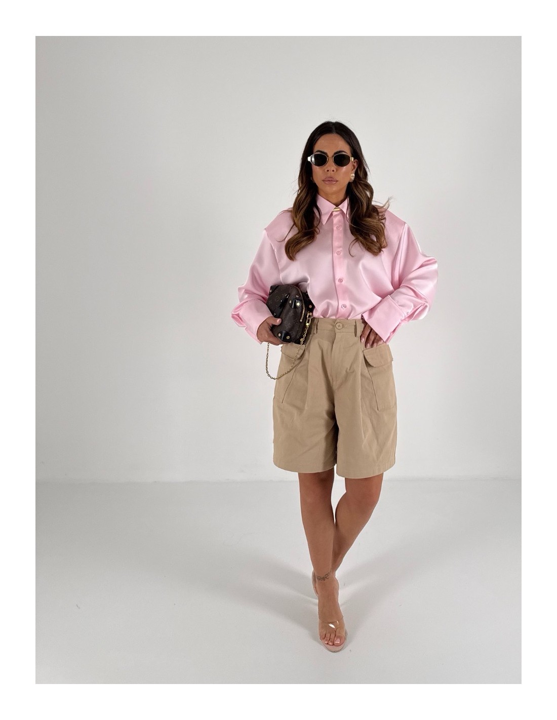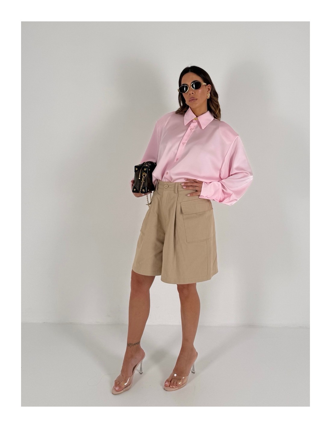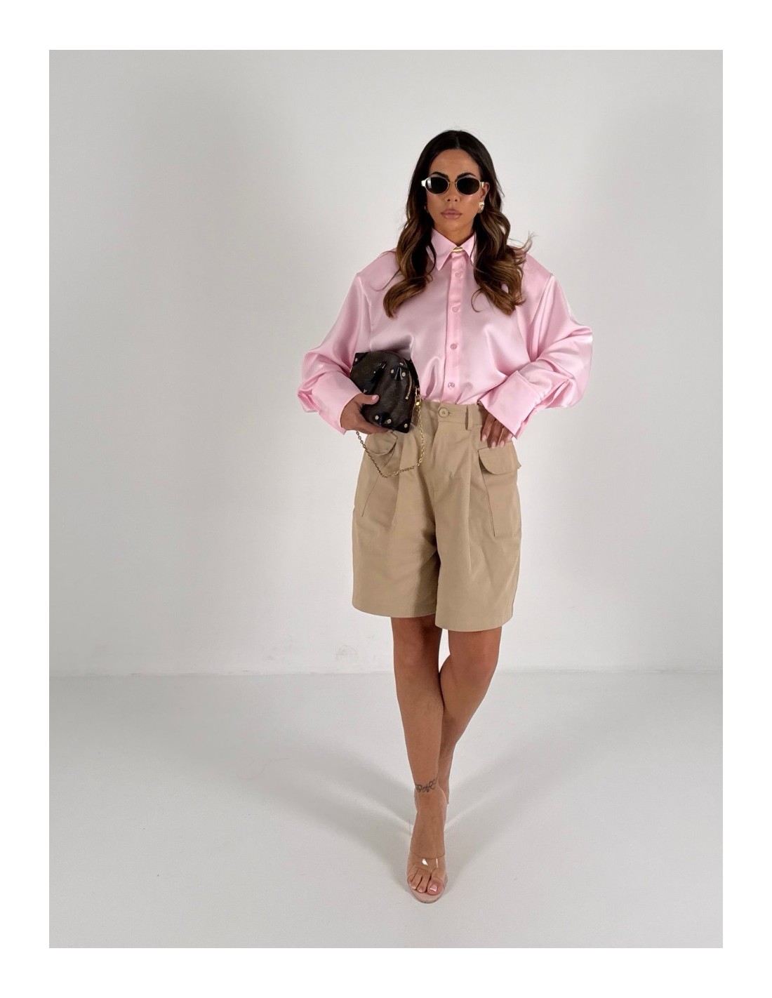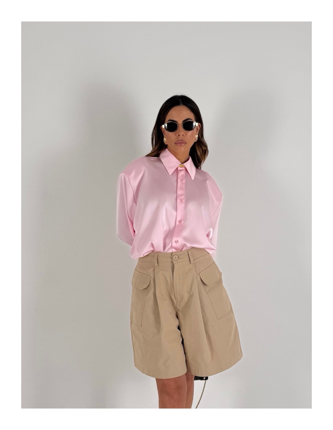 Shorts cargo beige , vita alta