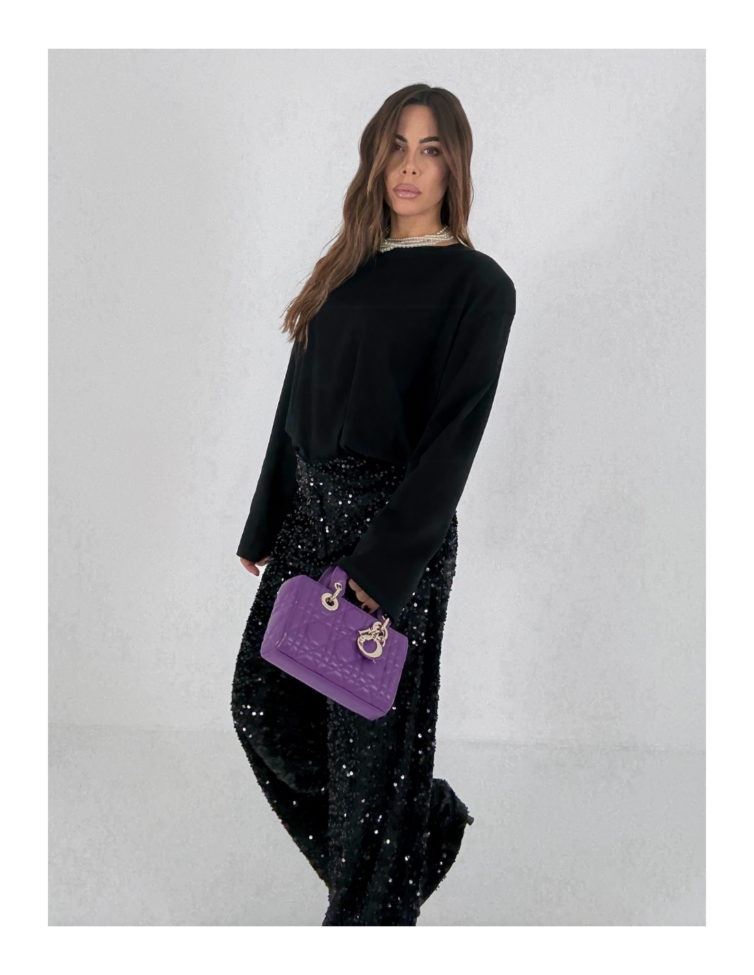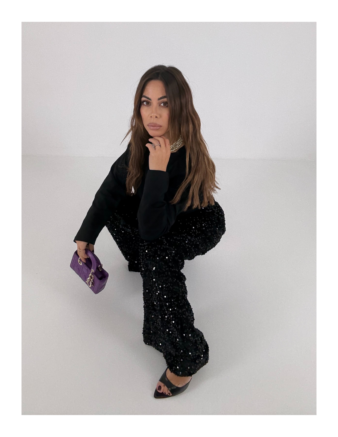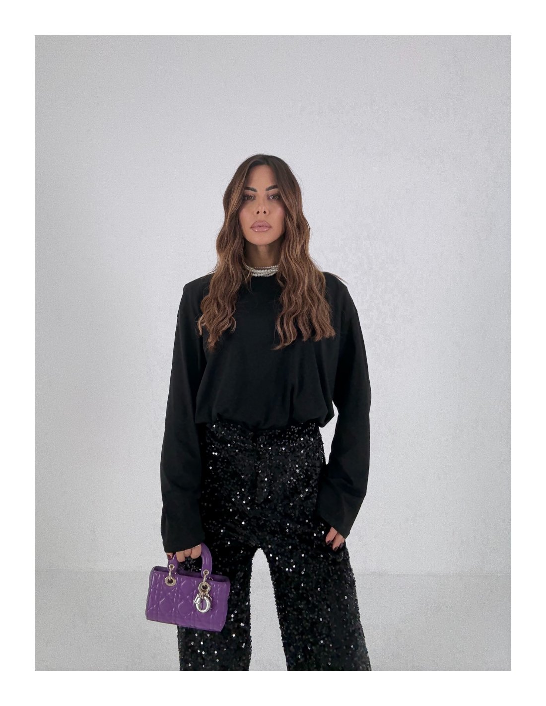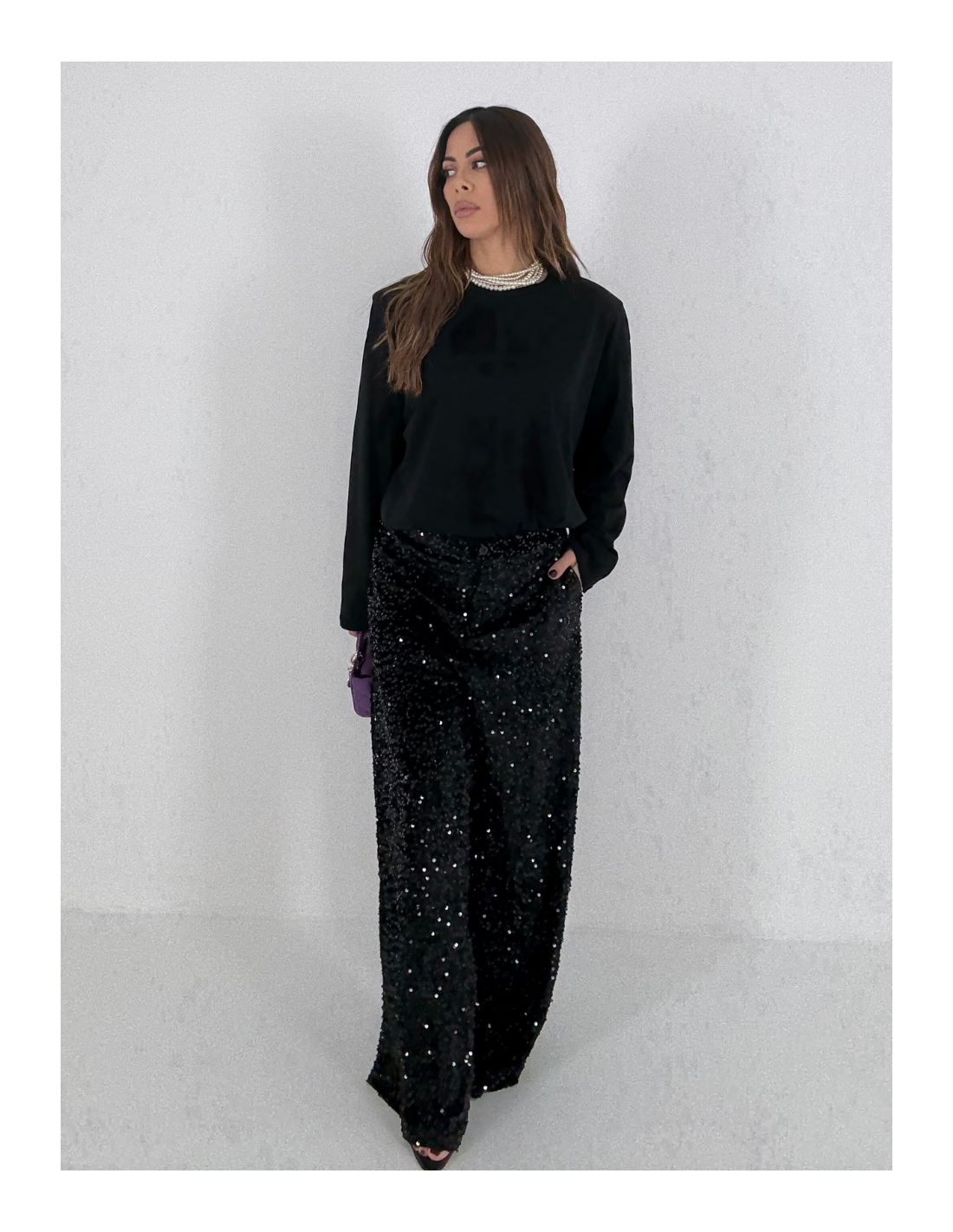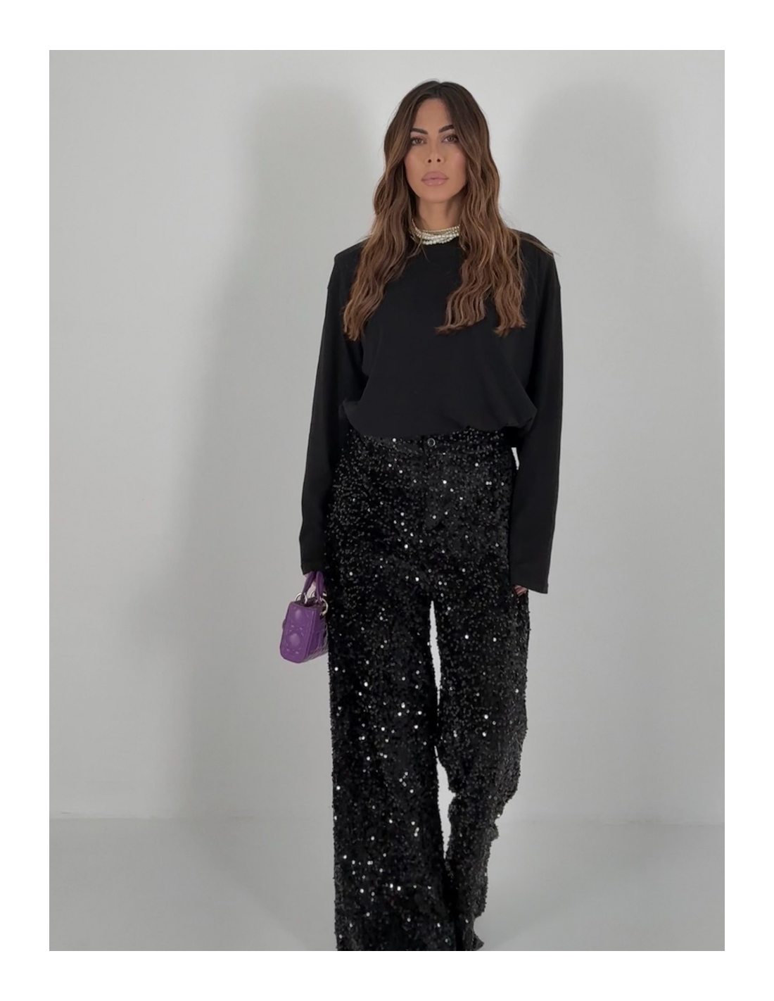 Pantalone in velluto con paillettes applicate ed elastico sul retro regolabile