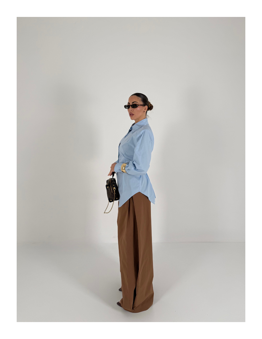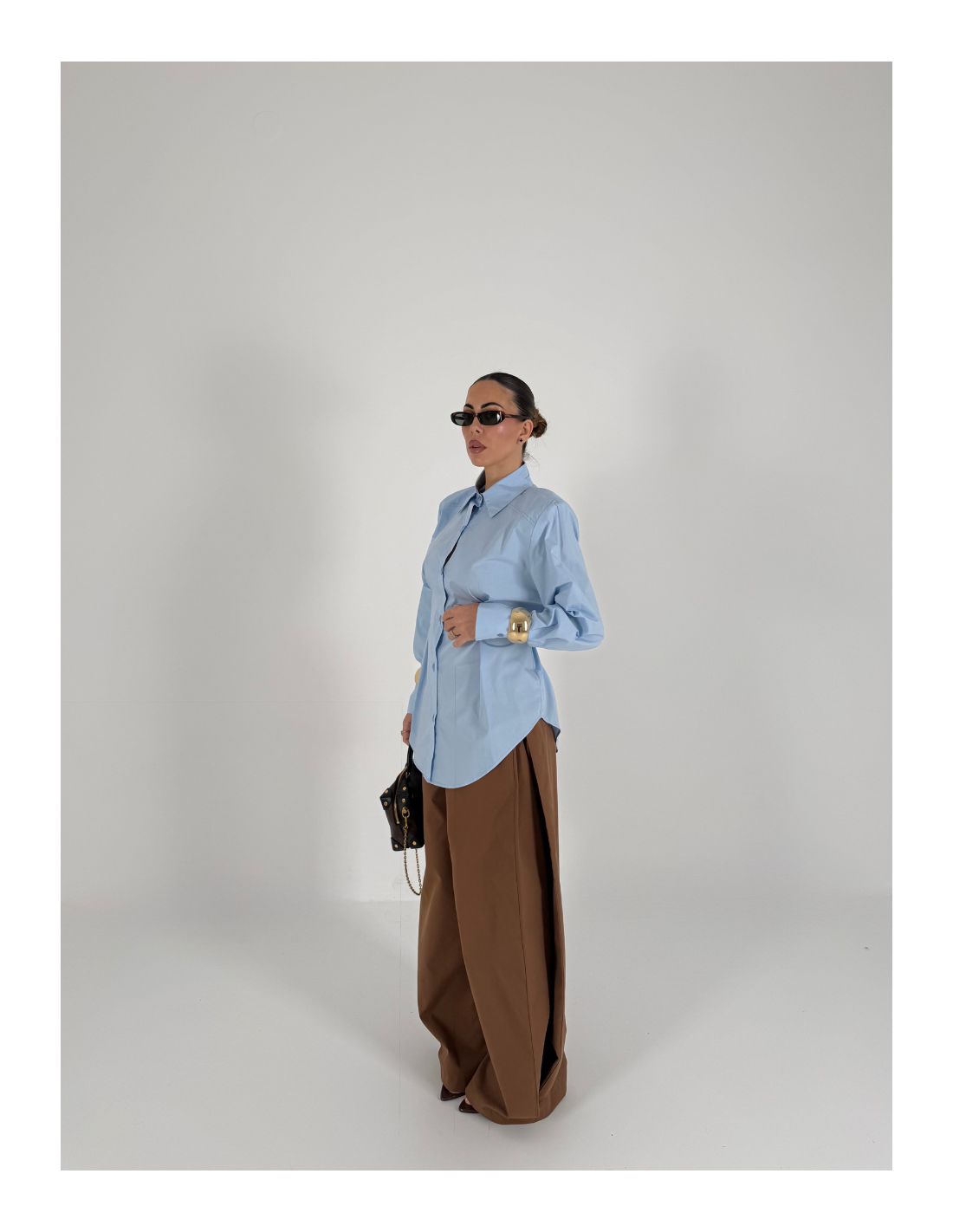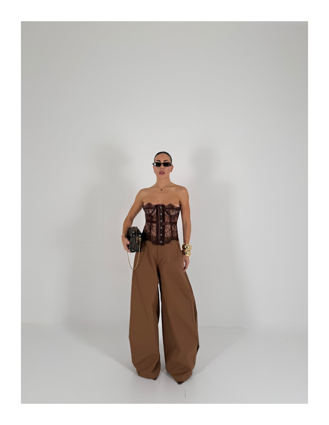 Pantalone balloon con passanti, tasche frontali e aperture laterali.