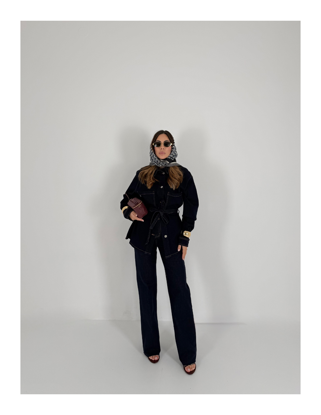 Denim lavaggio scuro con cuciture a contrasto