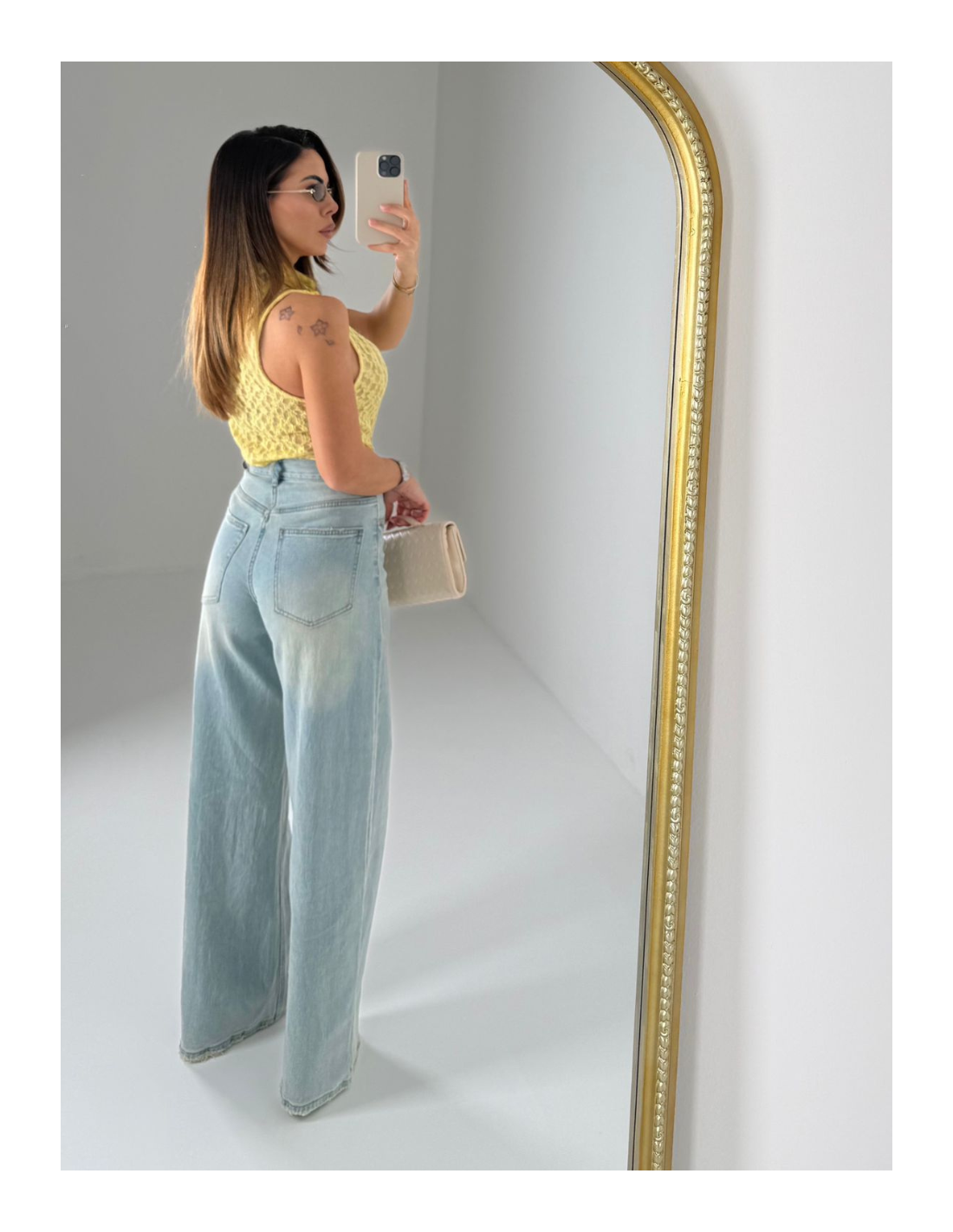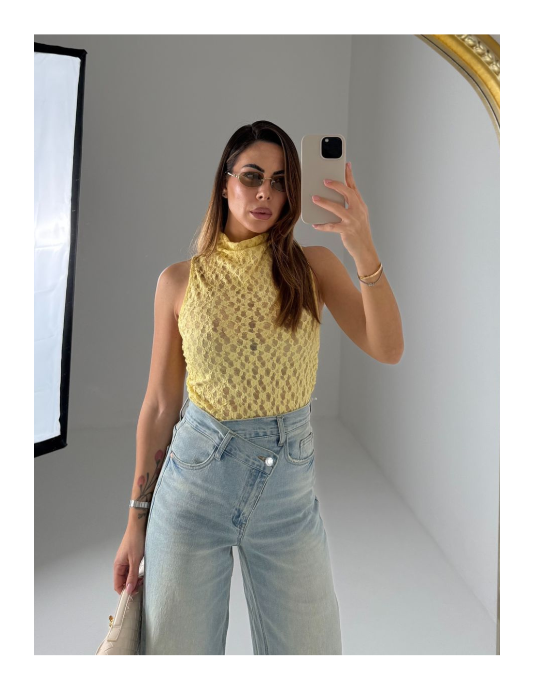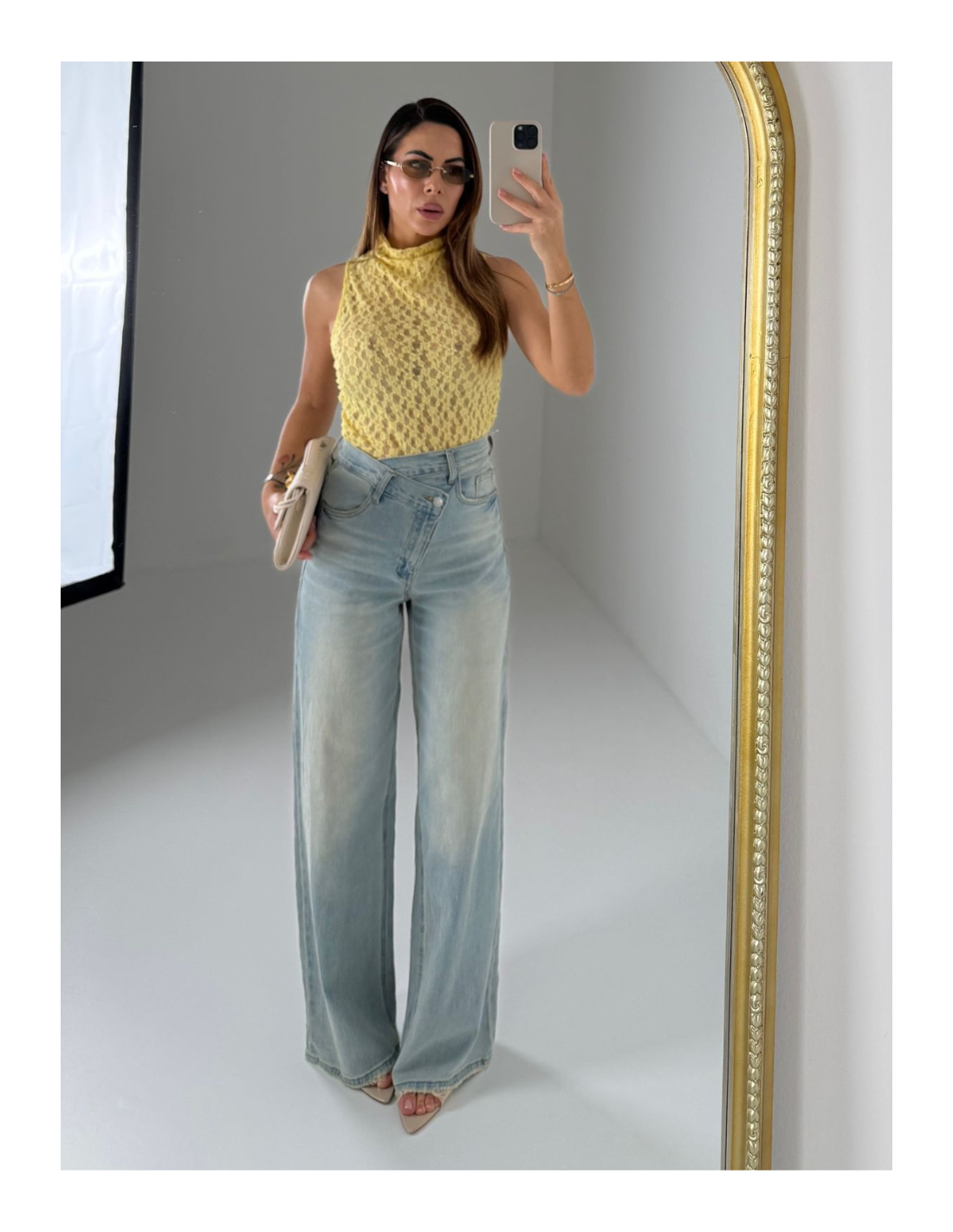 Denim con abbottonatura trasversale