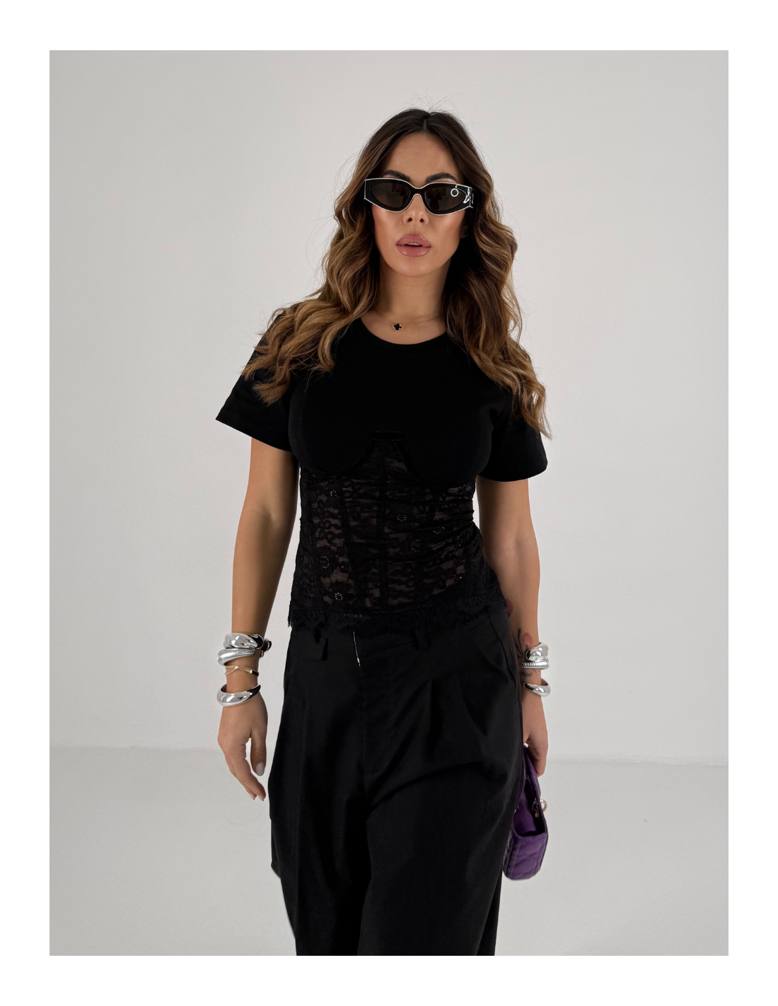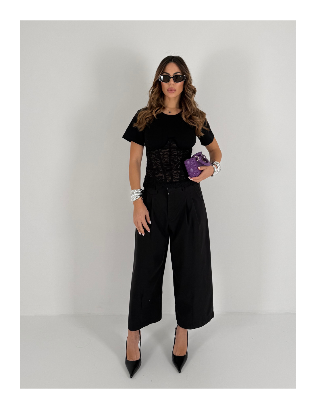 taglio ampio e morbido , con gamba larga che scende dritta fino a metà polpaccio