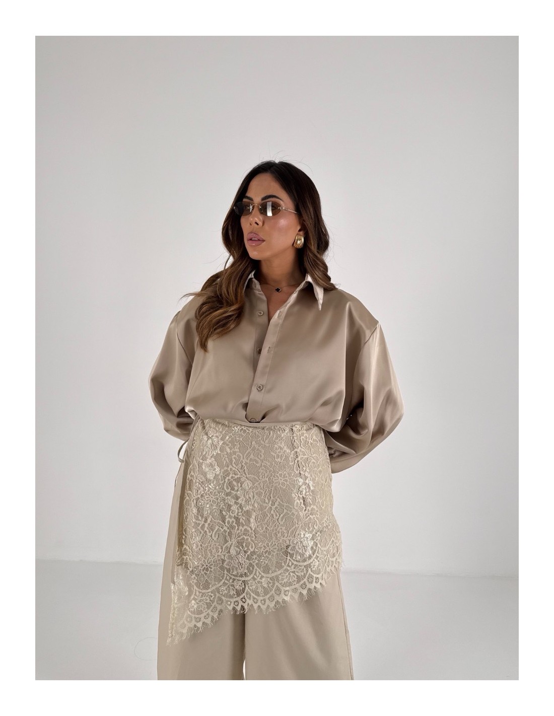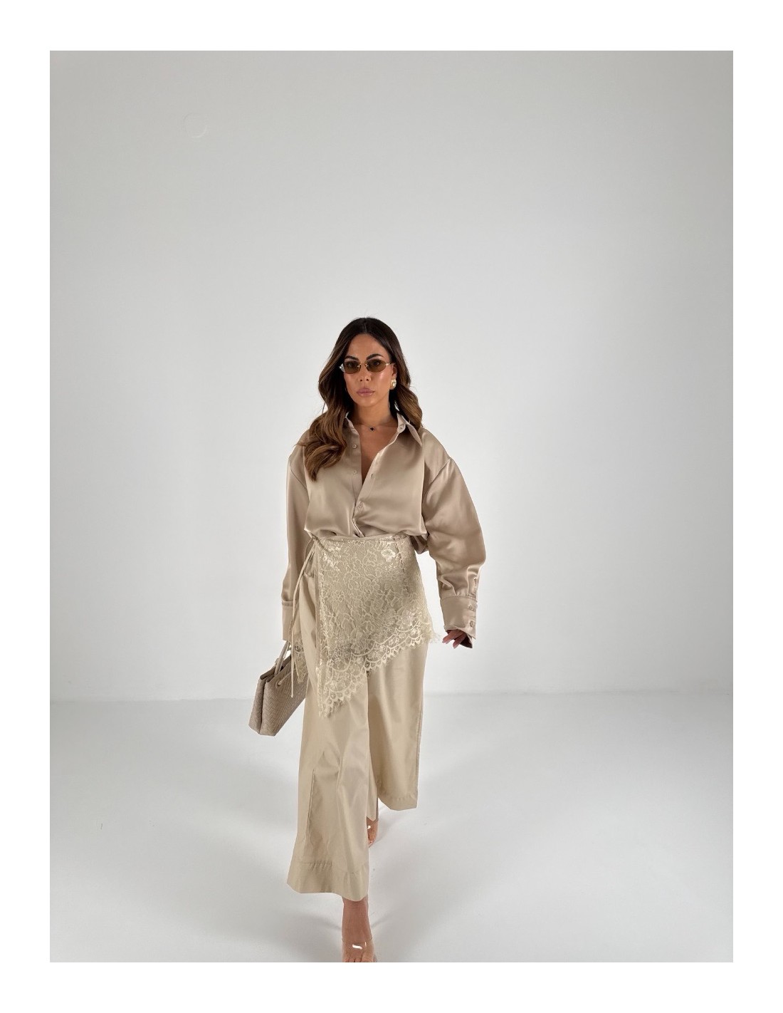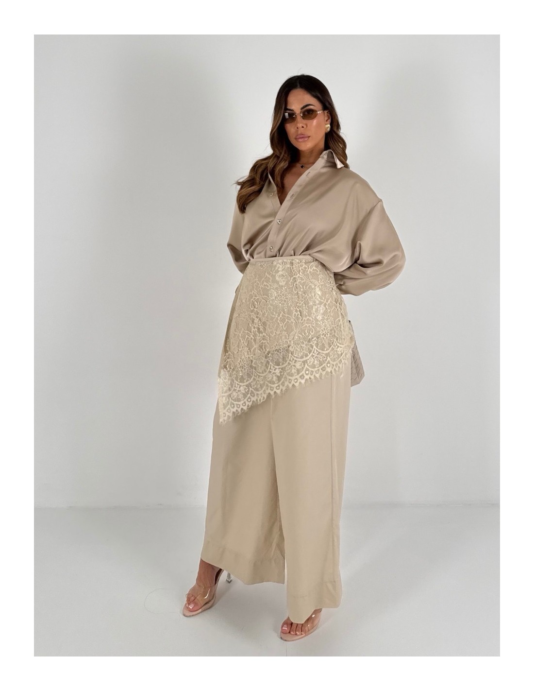 Pantalone con foulard in pizzo rimovibile
