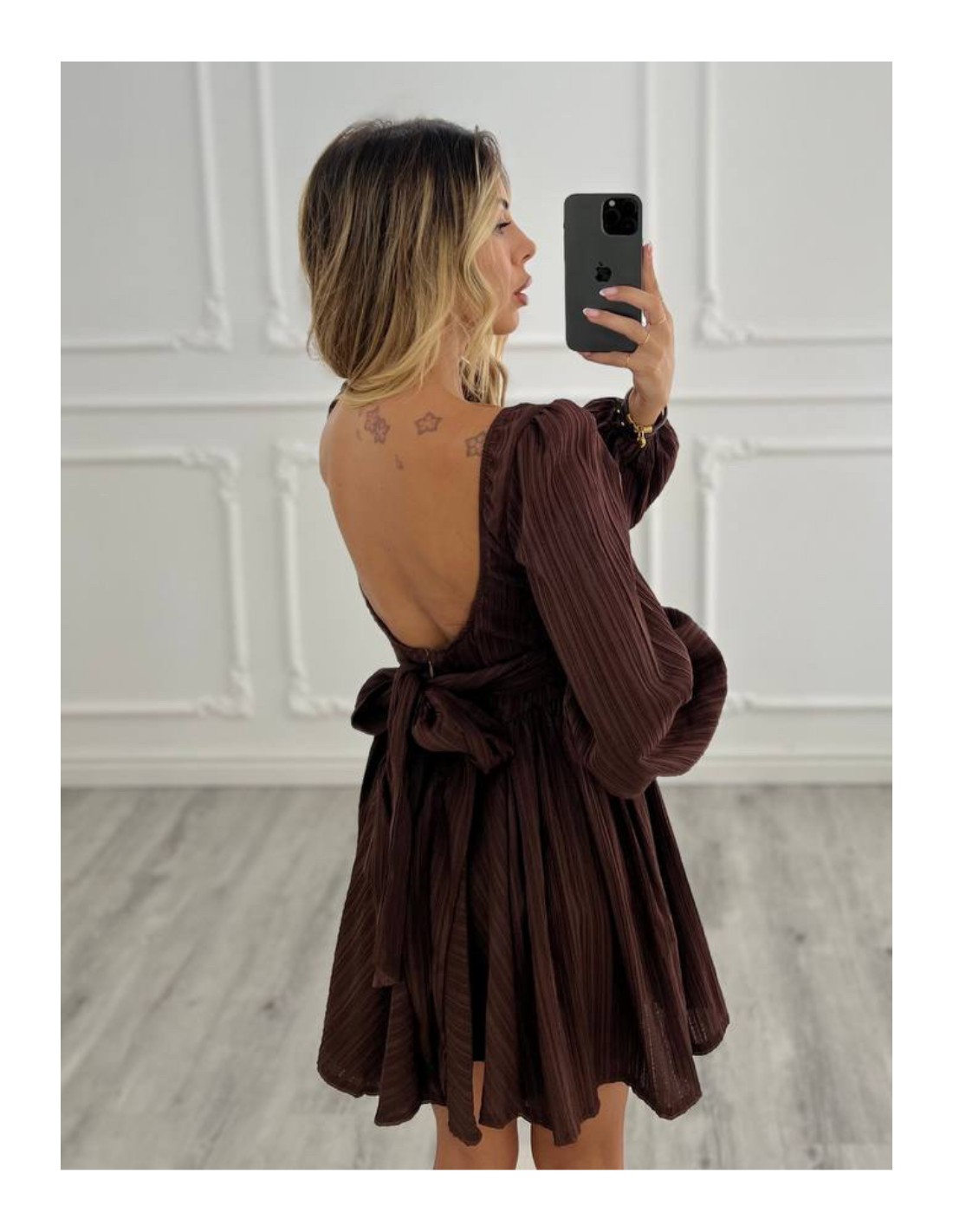 mini Dress con scollo sul retro e fiocco .