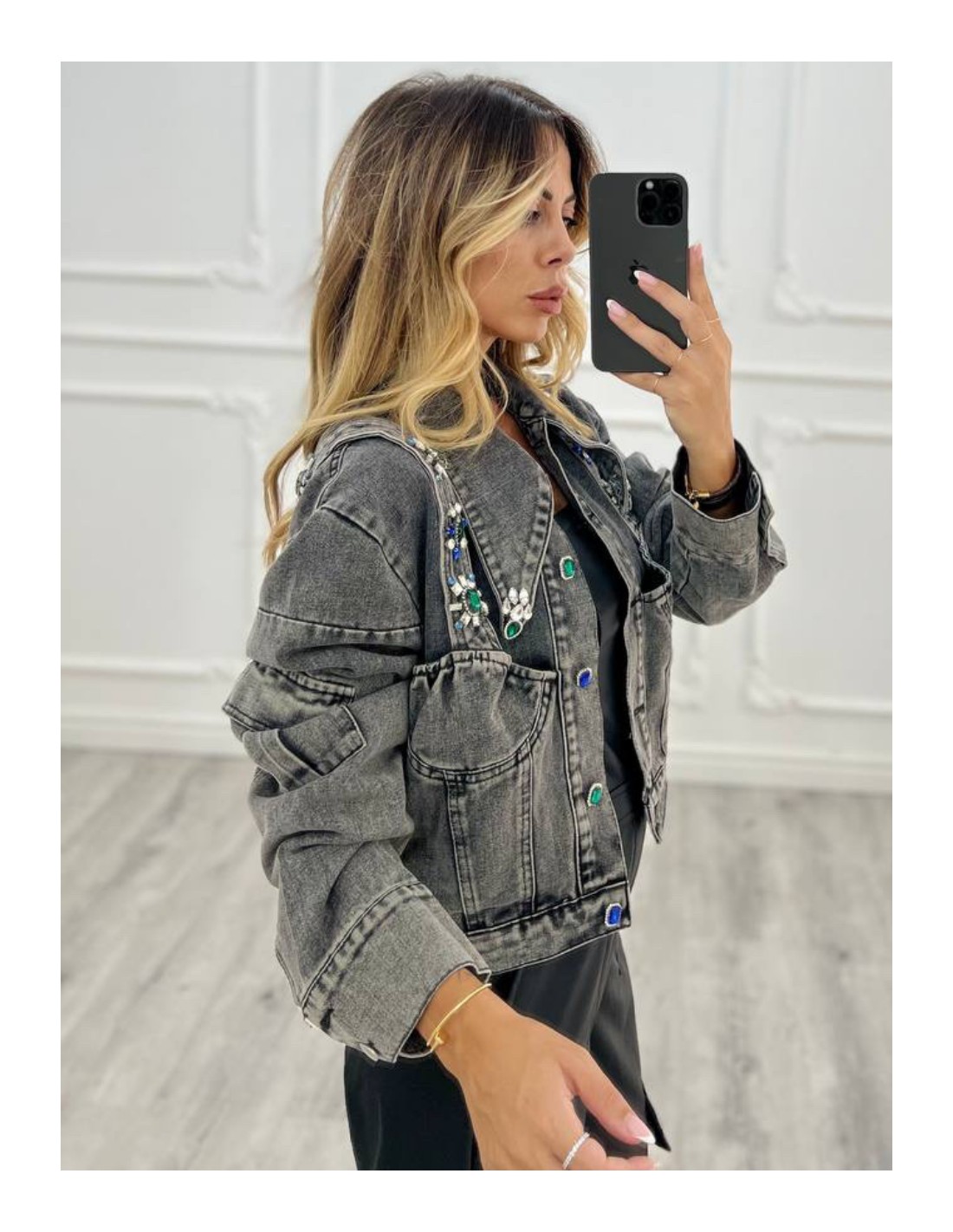 Giubbino di Jeans con applicazioni gioiello.