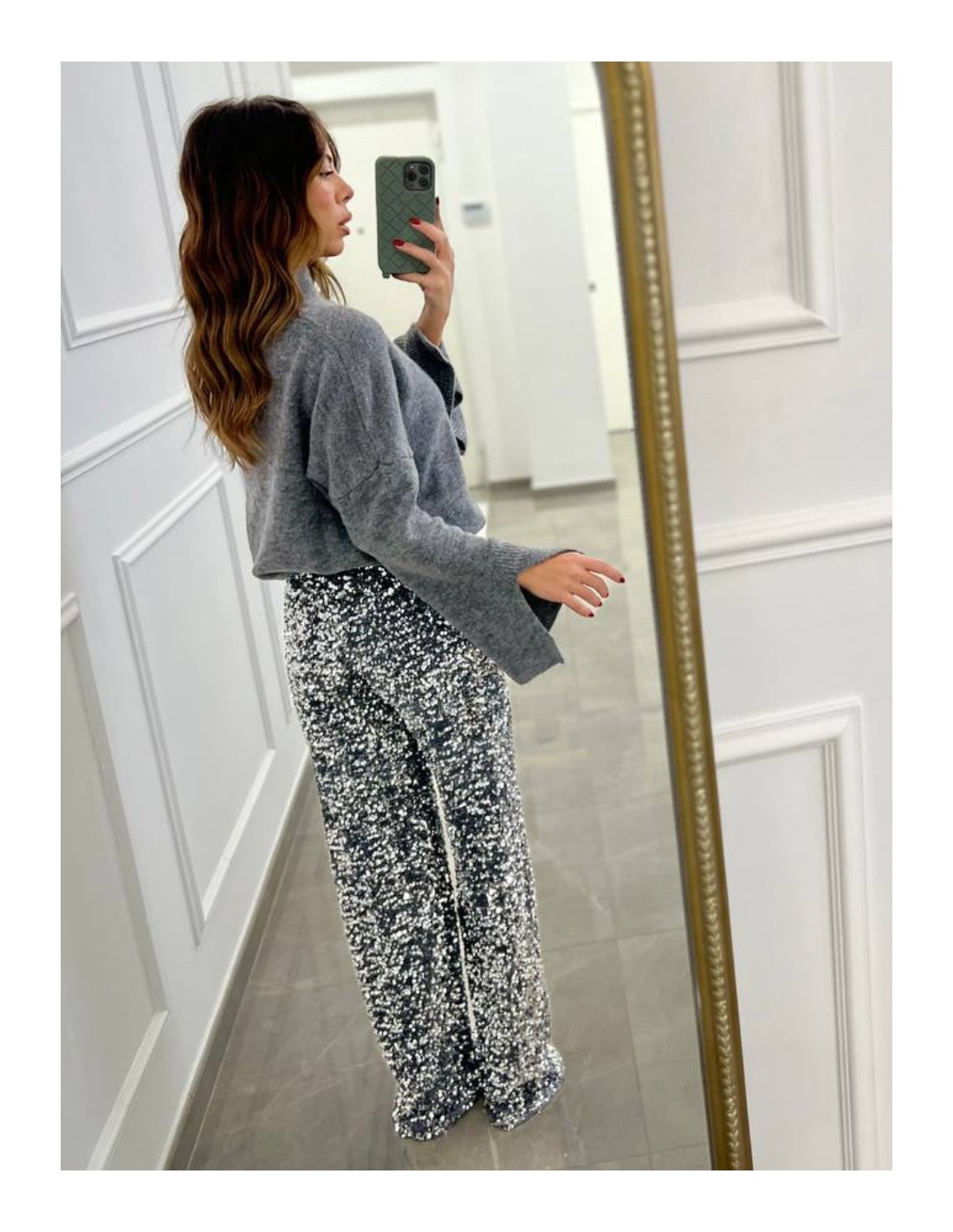 Pantalone a zampa pailettes.