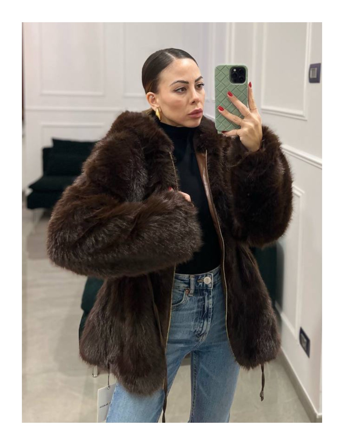 Pelliccia lunga con cappuccio.