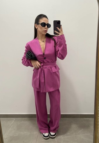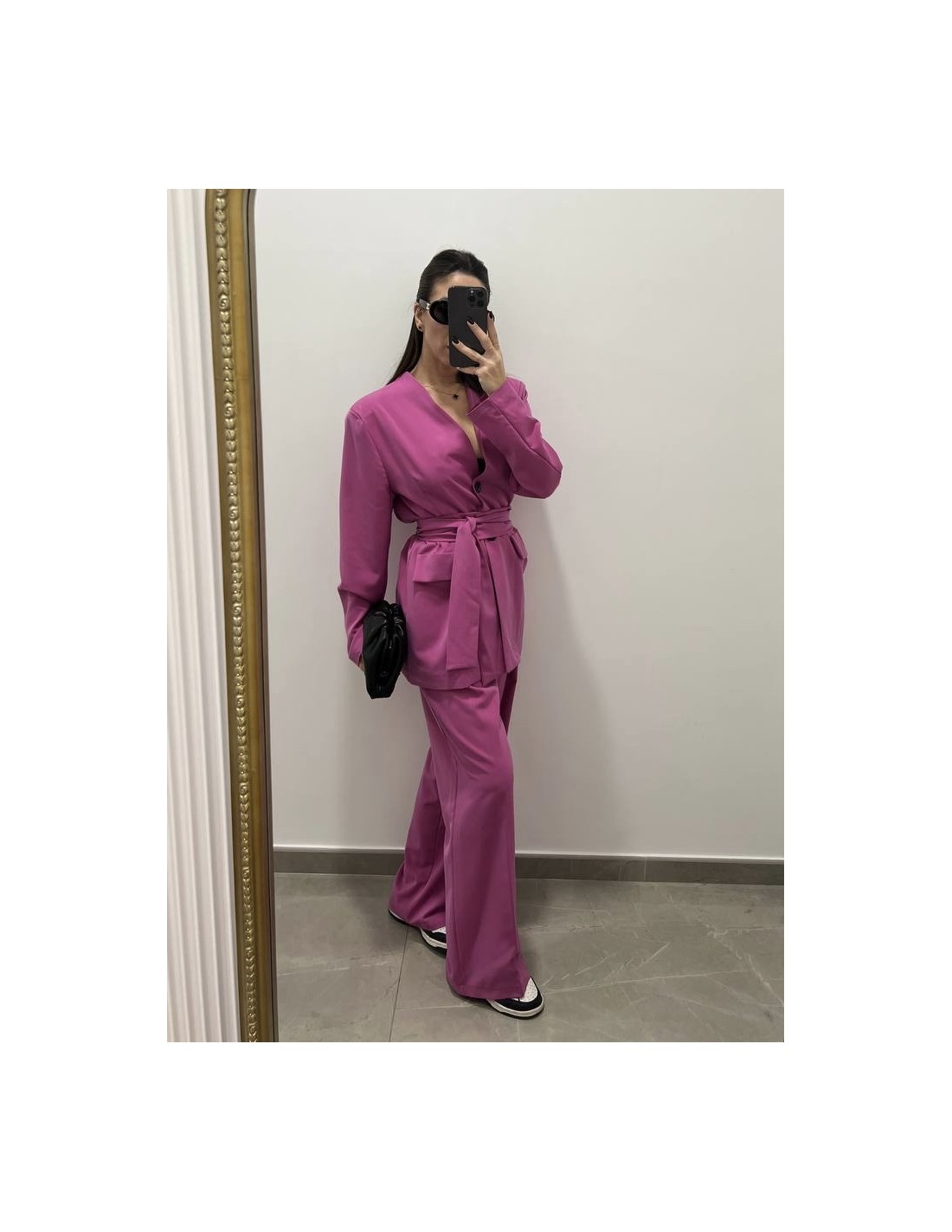 giacca con scollo a V, chiusura con bottoni più fusciacca in vita.