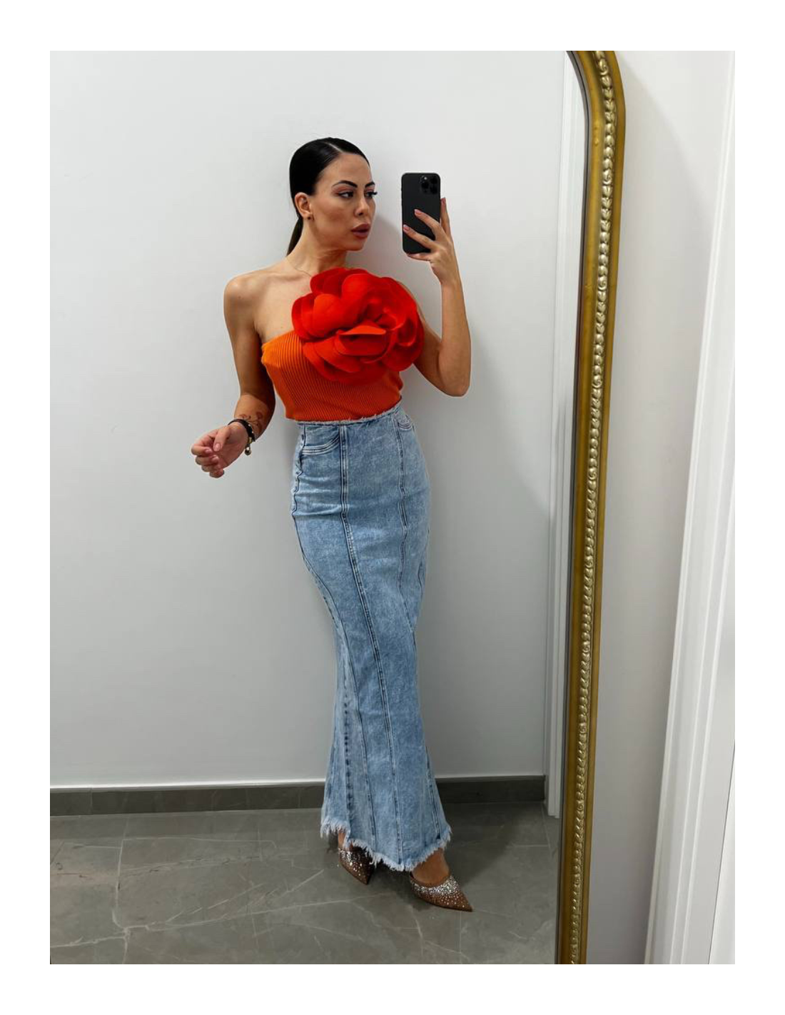 Prodotto non disponibile Nuovi arrivi Top mono spalla Maxi Flower arancione Nomad 20,00 € top monospalla tessuto costine dettaglio fiore sul davanti taglia unica Guarda