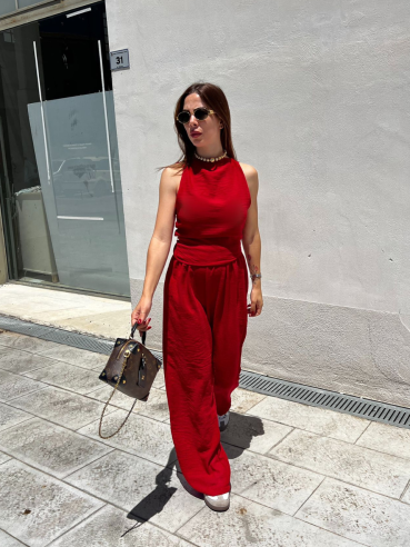 top spallina giro manica, scollo sul retro con chiusura fiocco