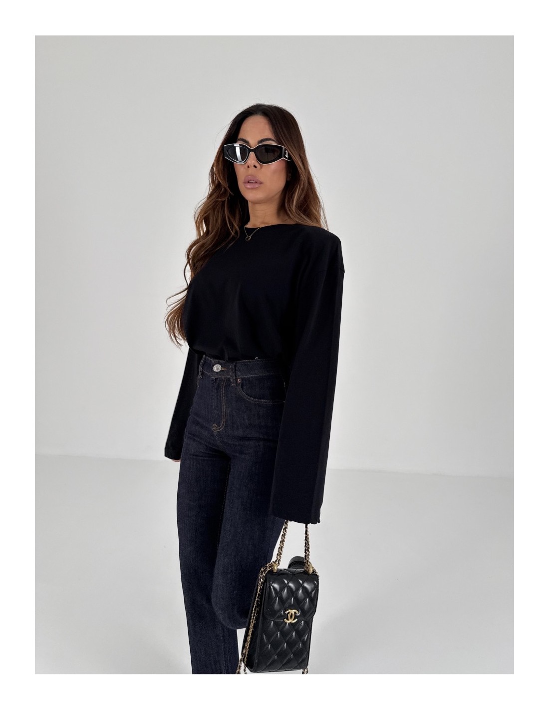 maniche lunghe e spalline imbottite