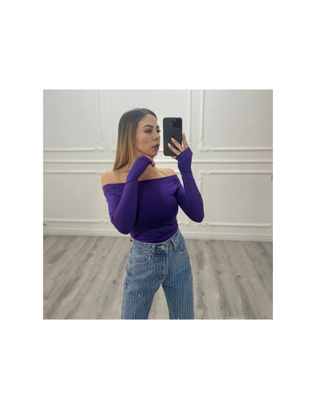 Maglia scollo a barca VIOLA